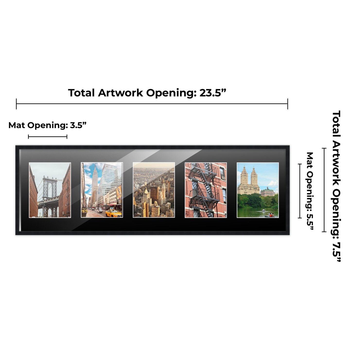 Black Finish Collage Frame - Black Mat, 20 Frame Sizes to Choose From, UV Acrylic, Wall Hanging Hardware, Vertical or Horizontal Display