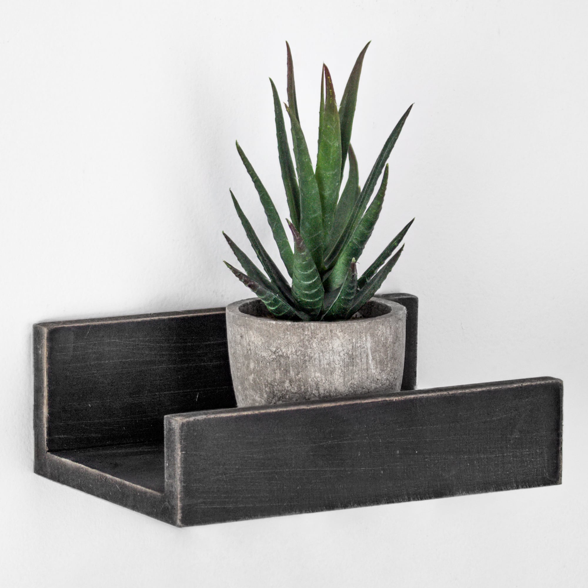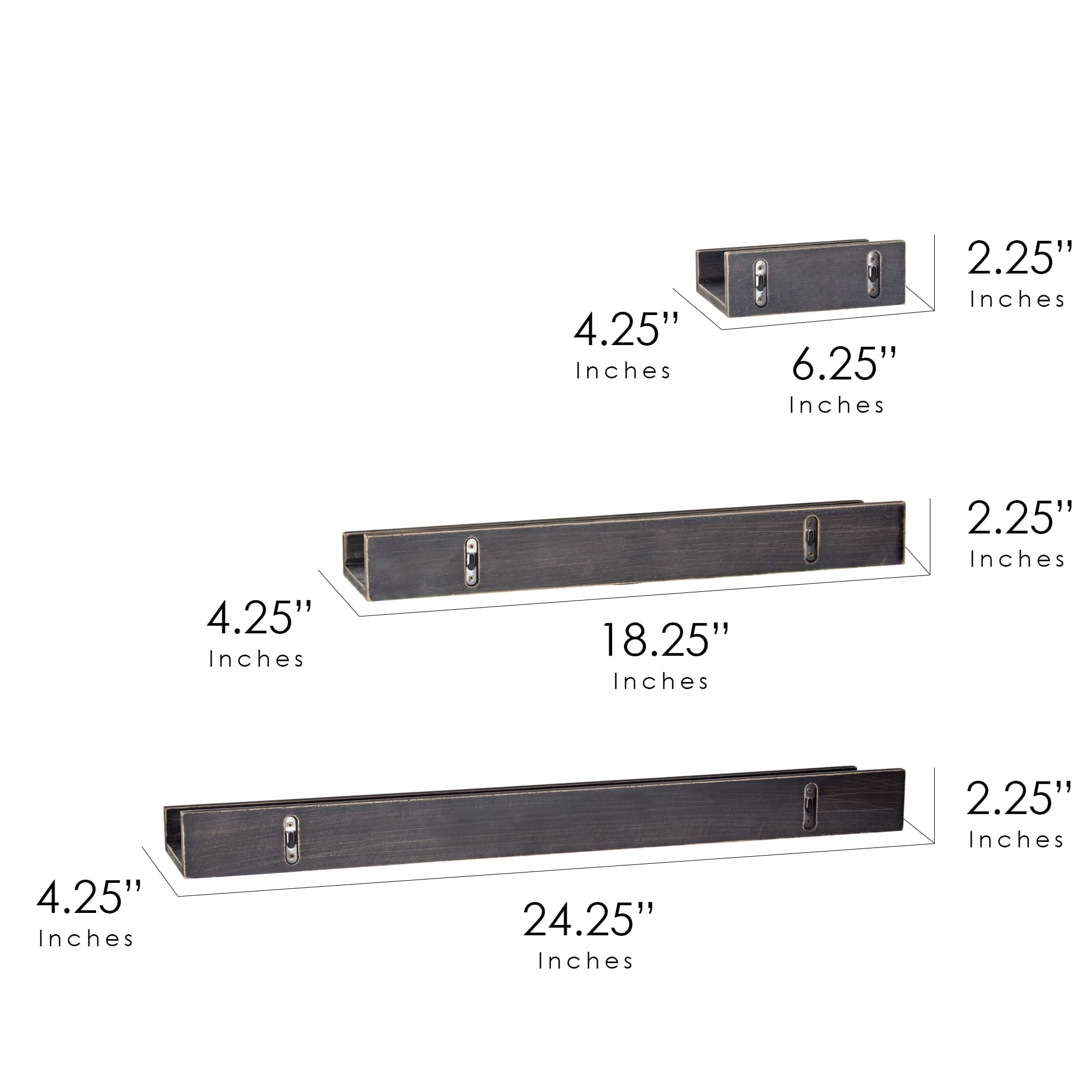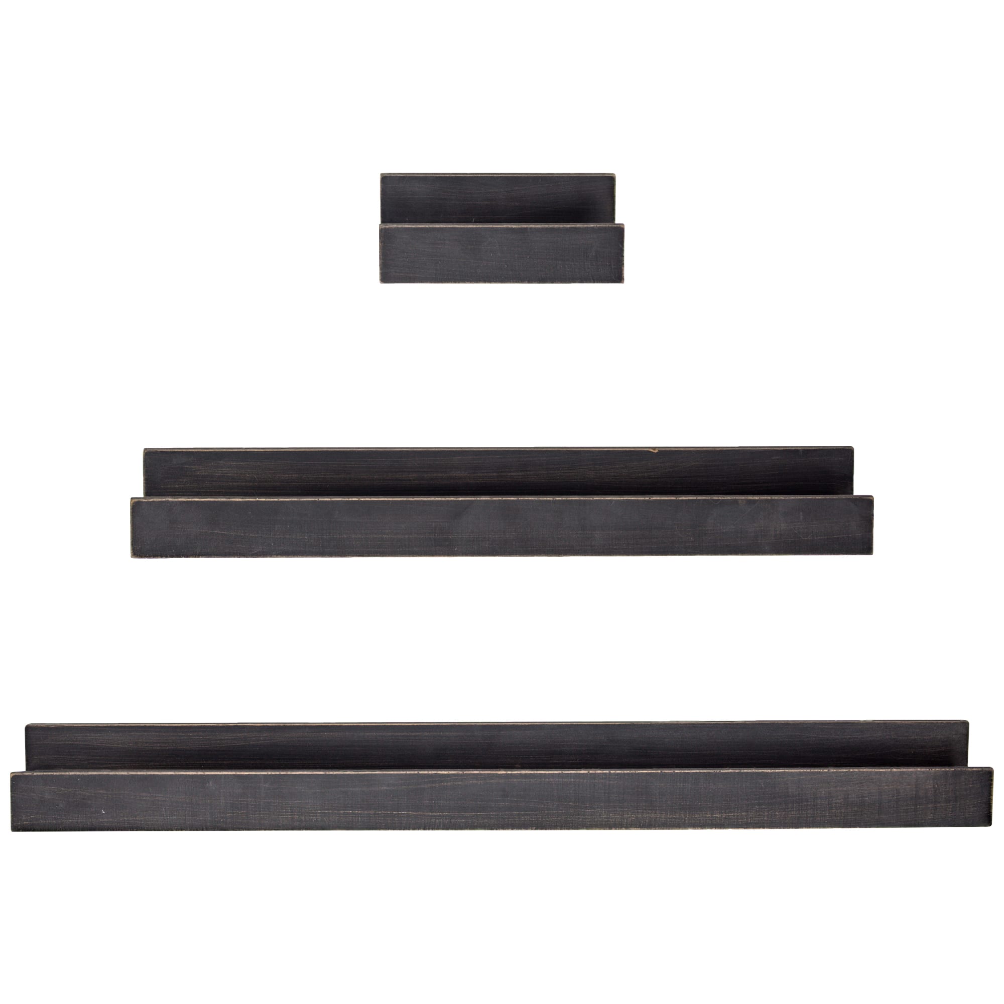 Black Floating Wooden Wall Shelves Set