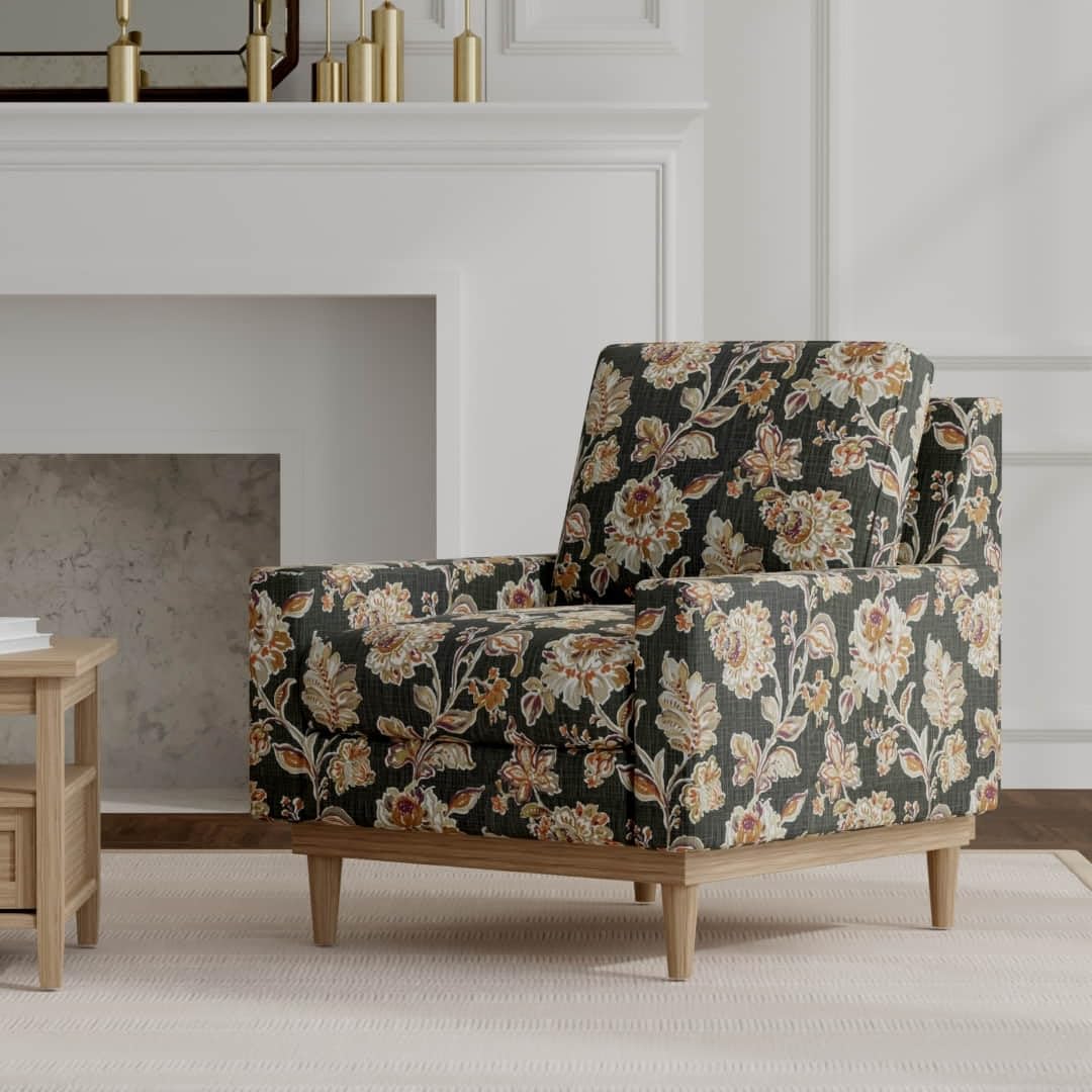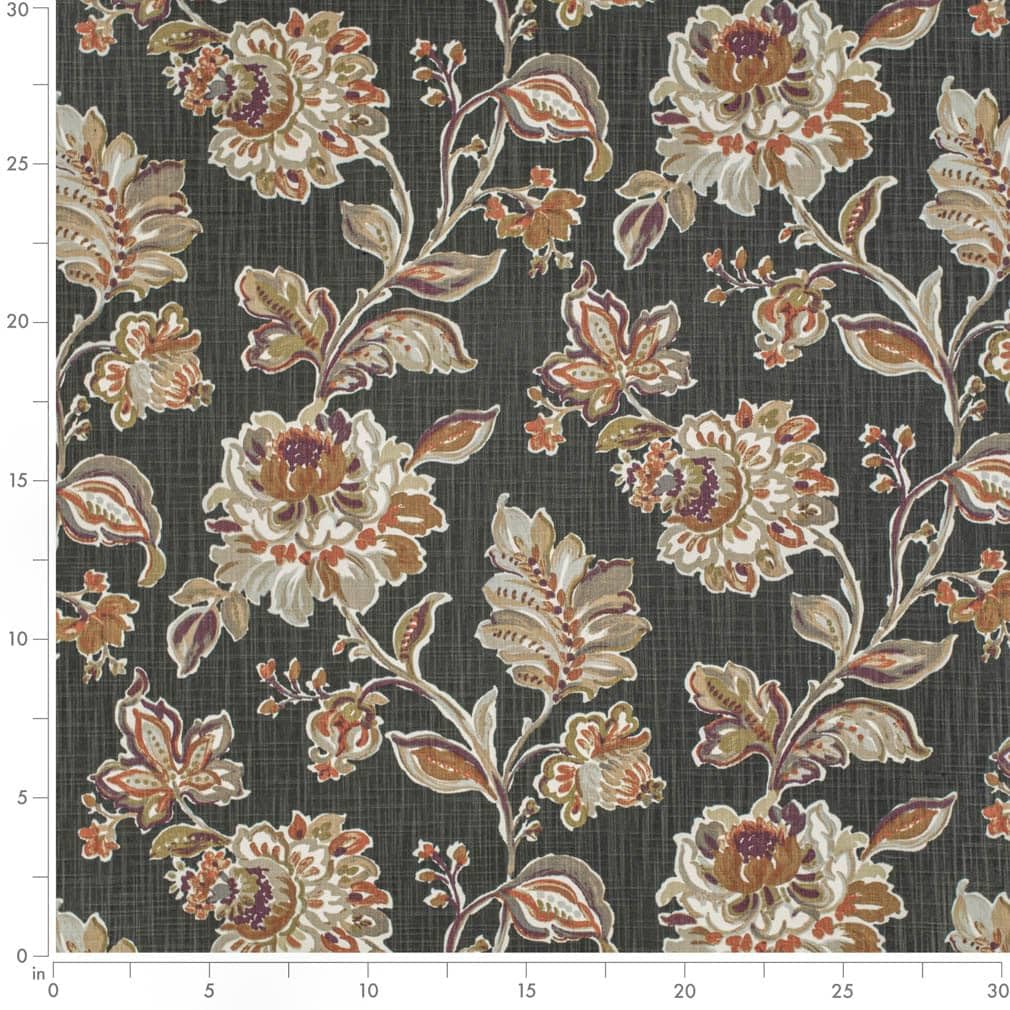 Black Floral Linen Look Print Upholstery Fabric by The Yard - SKU: Bernard Tobacco
