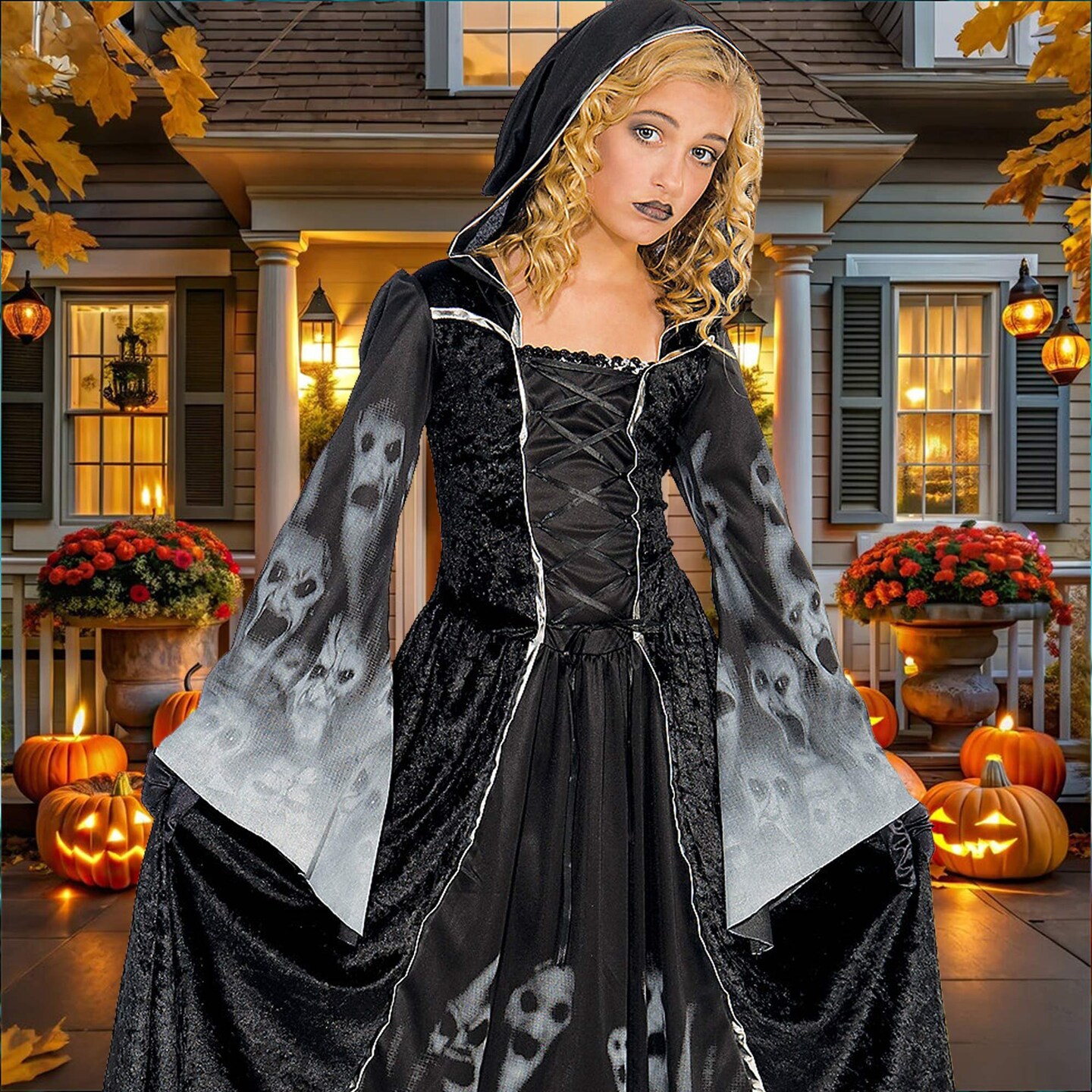 Black Forsaken Soul Costume for Girls Halloween Scary Ghost Dress Up Outfit