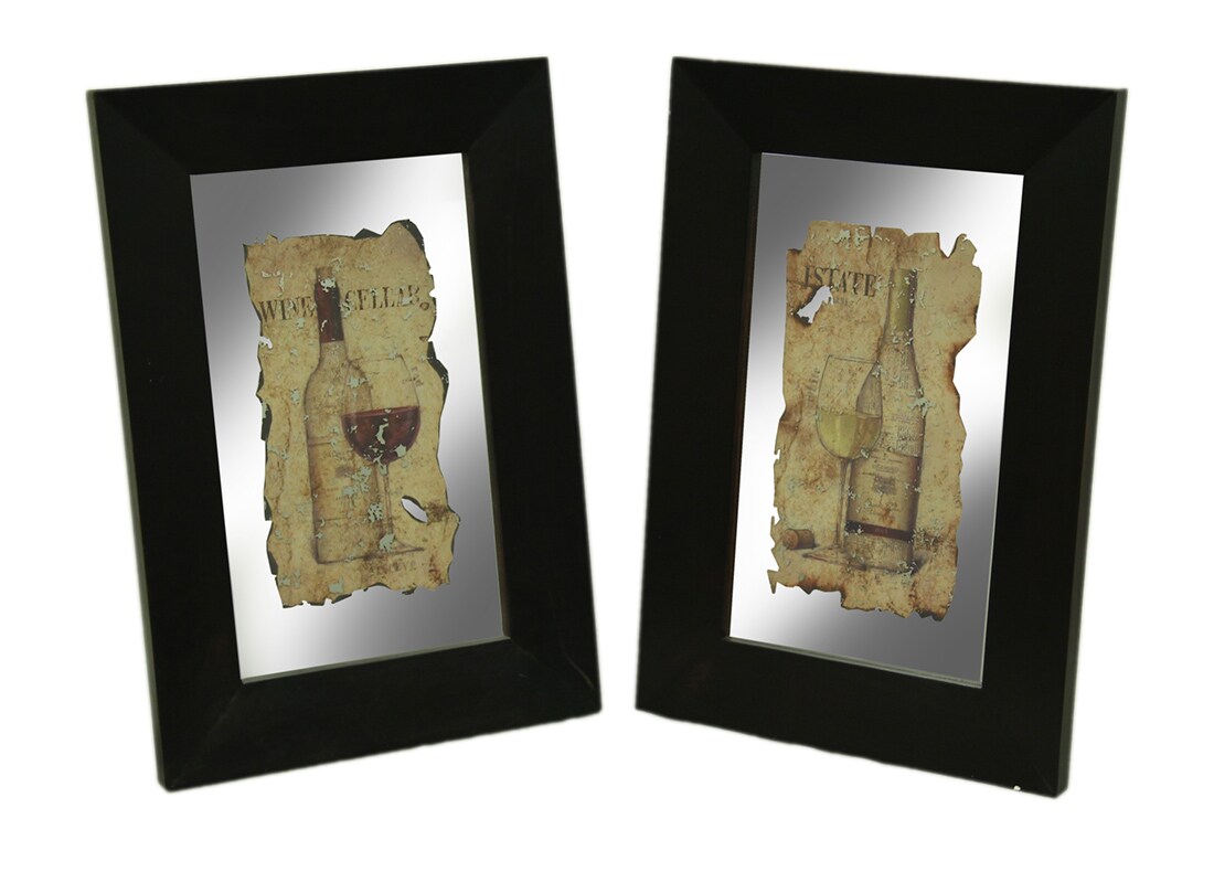 Black Frame 2 Piece Vintage Wine Wall Mirror Set