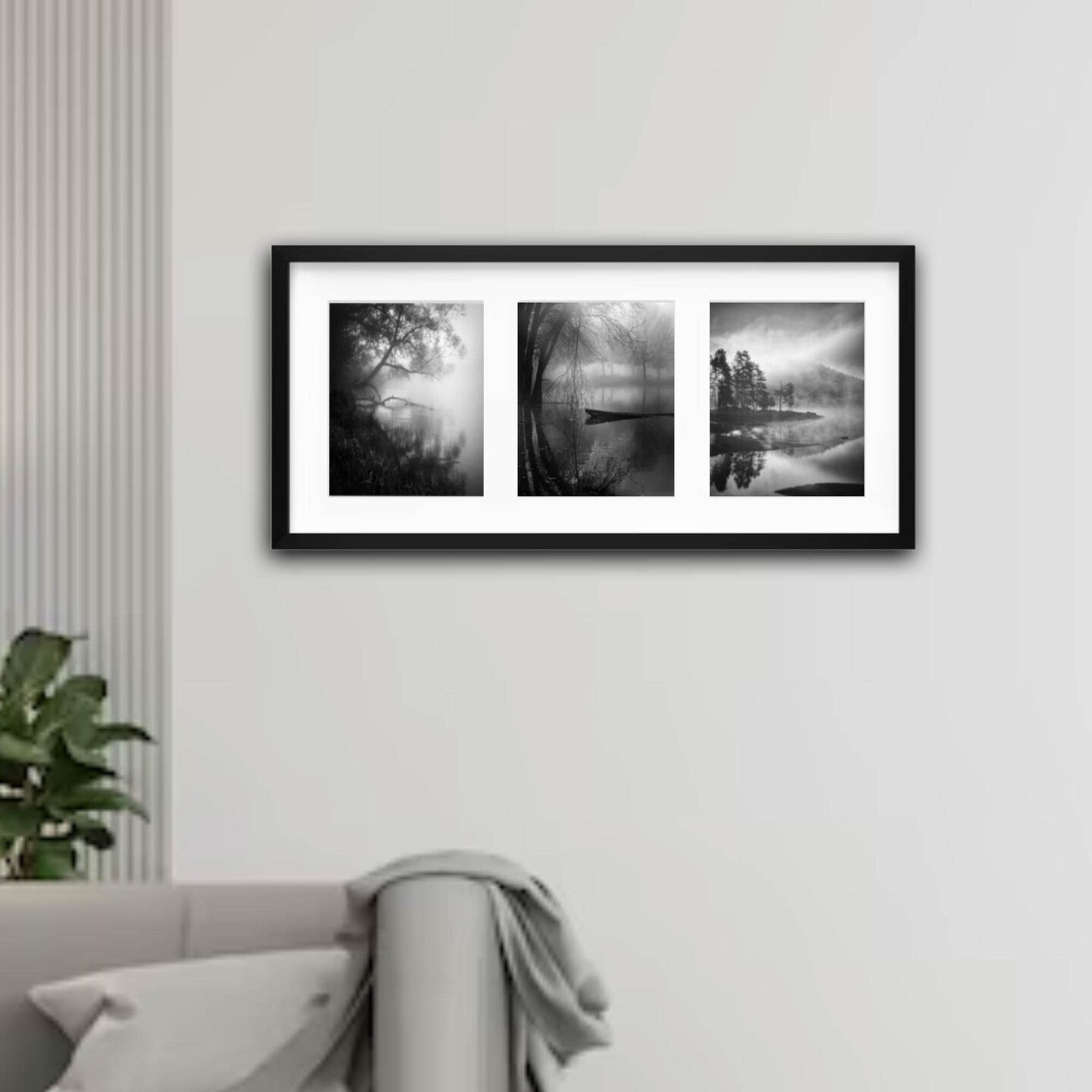 Black Frame for 3 Pictures, 30x13¾" – Deep Display, No-Nail Hanging, Horizontal/Vertical!