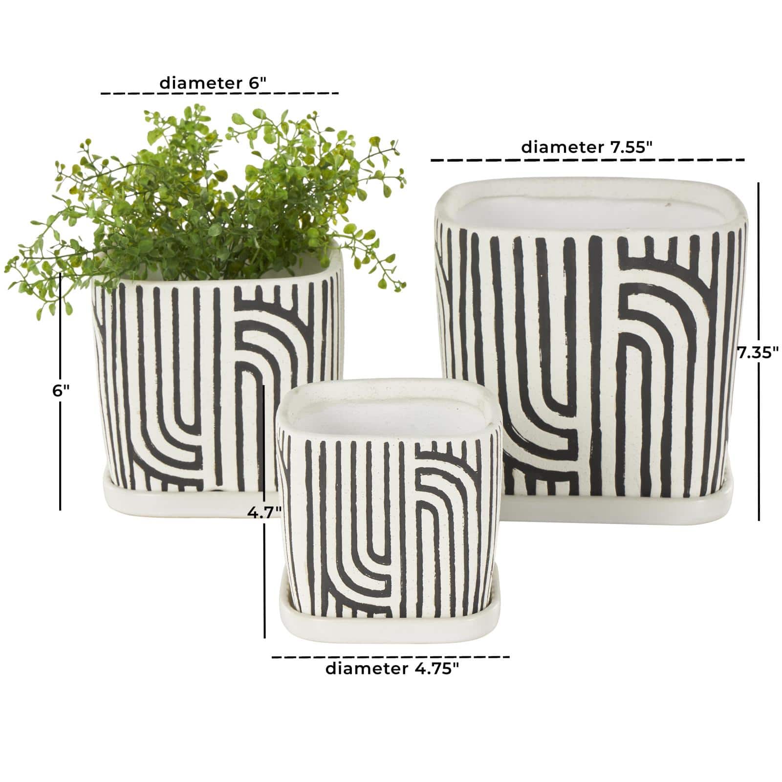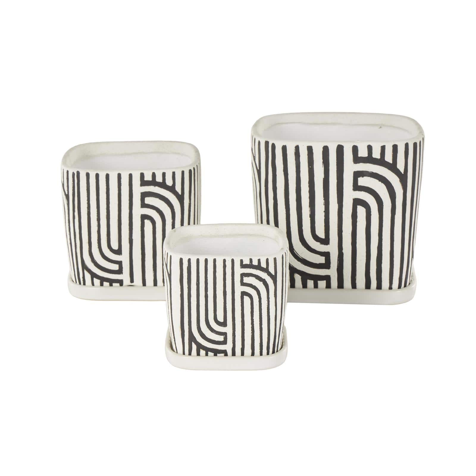 Black Geometric Linear Arch Pattern Ceramic Planter Set