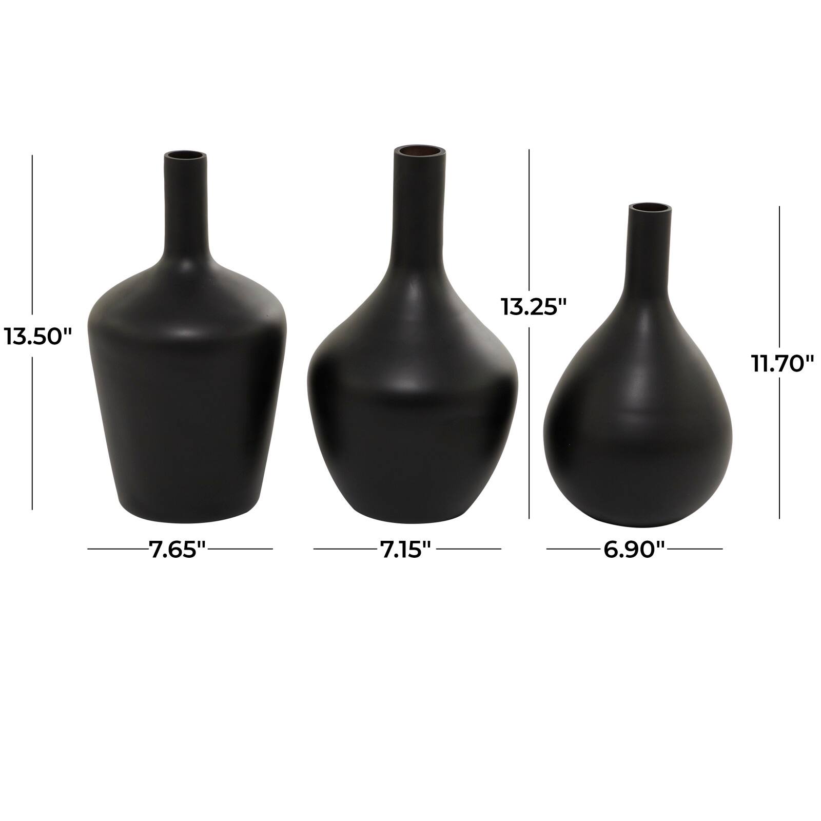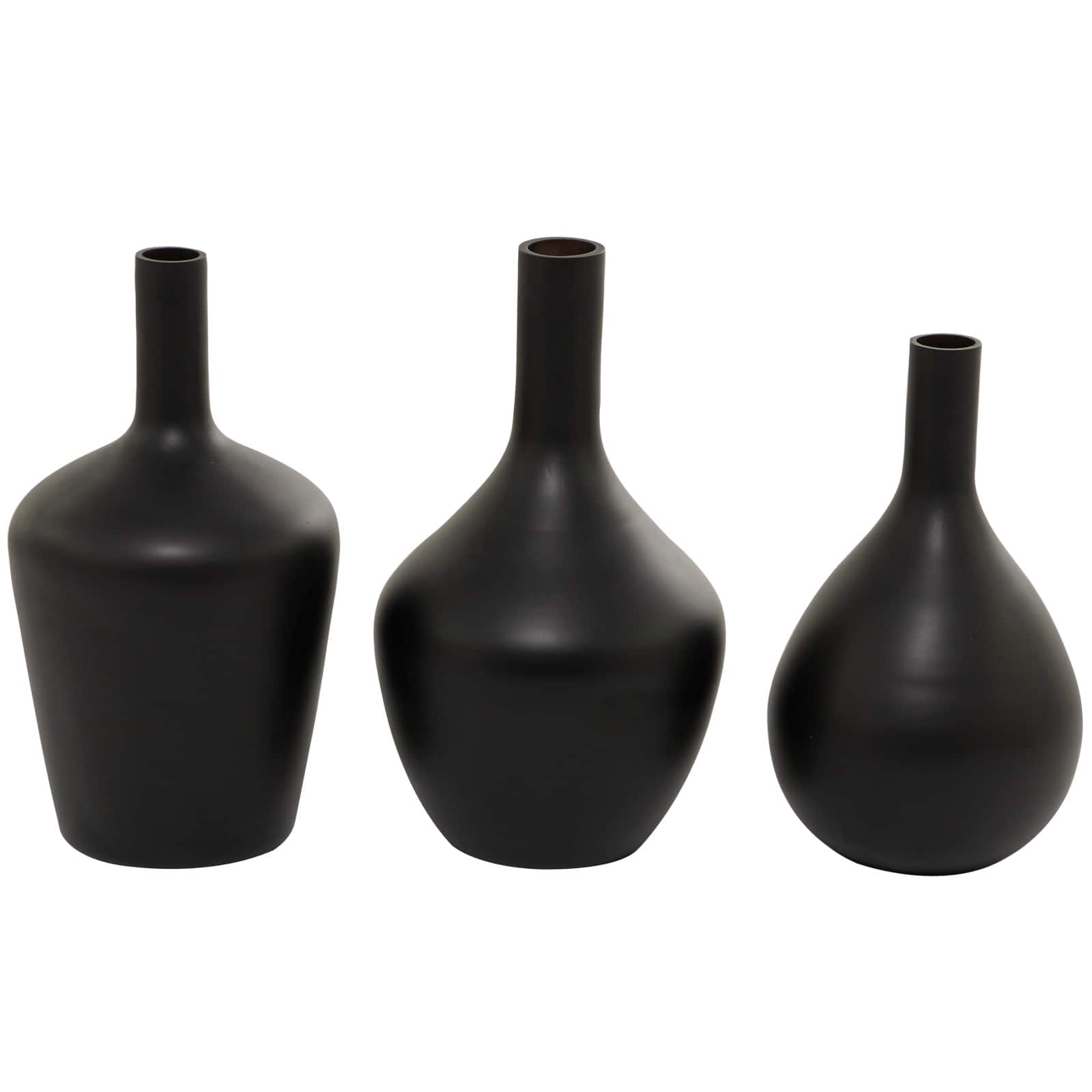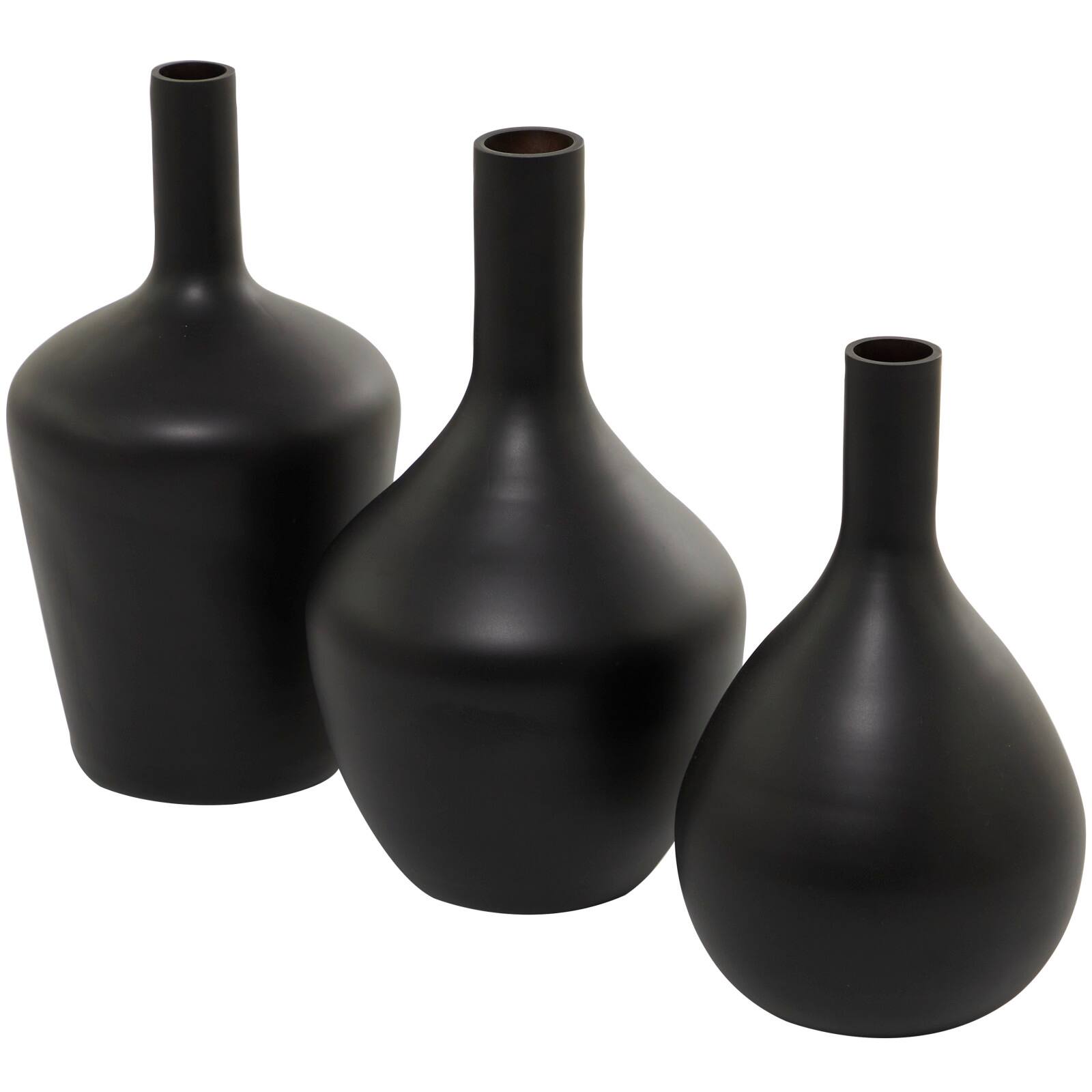 Black Glass Vase Set of 3 14", 13", 12"