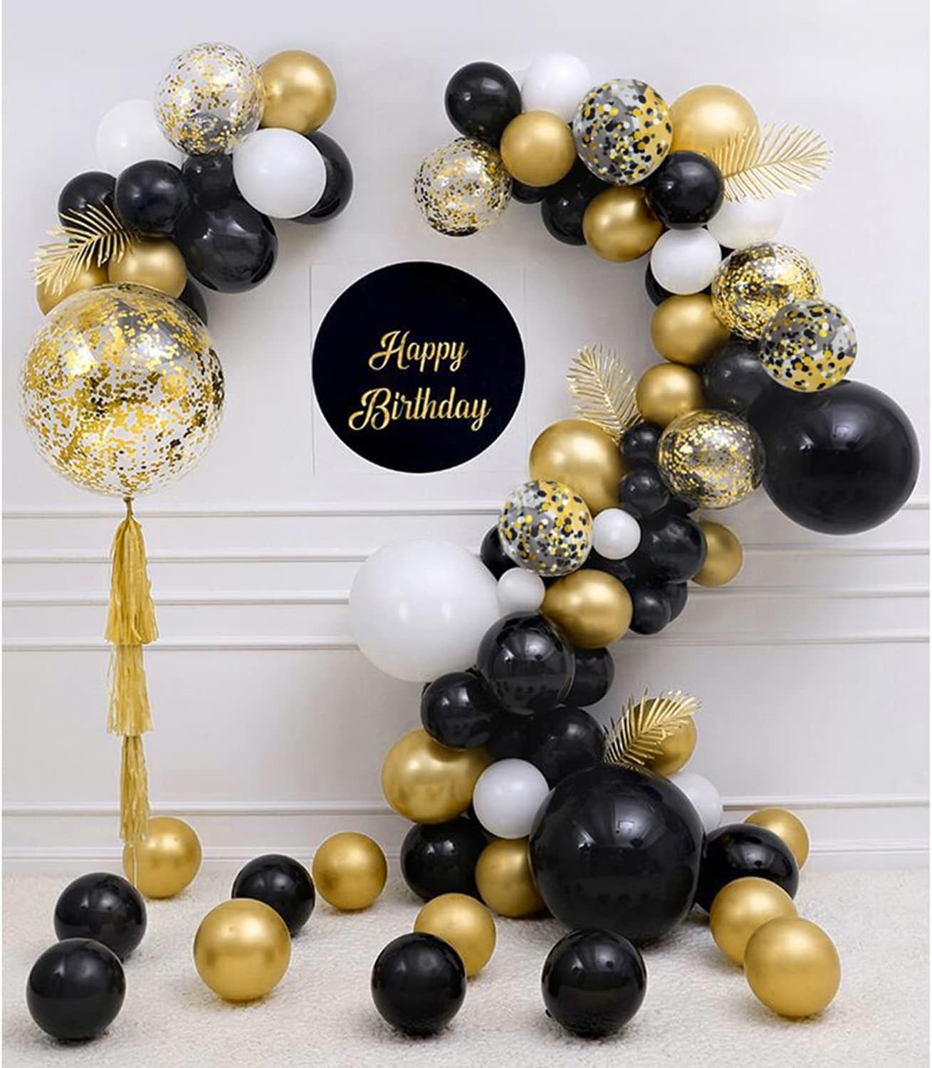 Black Gold Confetti Balloons 50 pack - 12 Inch
