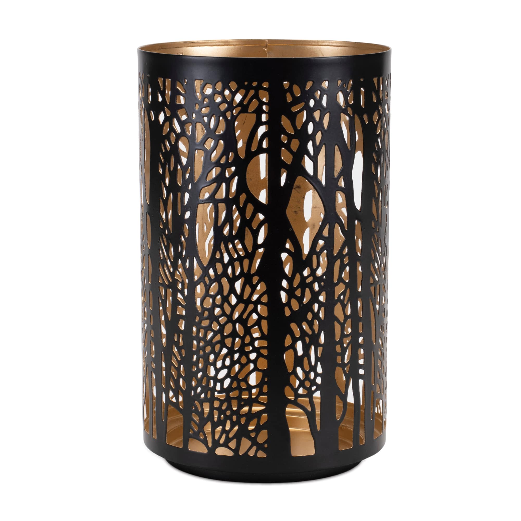 Black & Gold Forest Trees Punched Metal Candle Holder Set