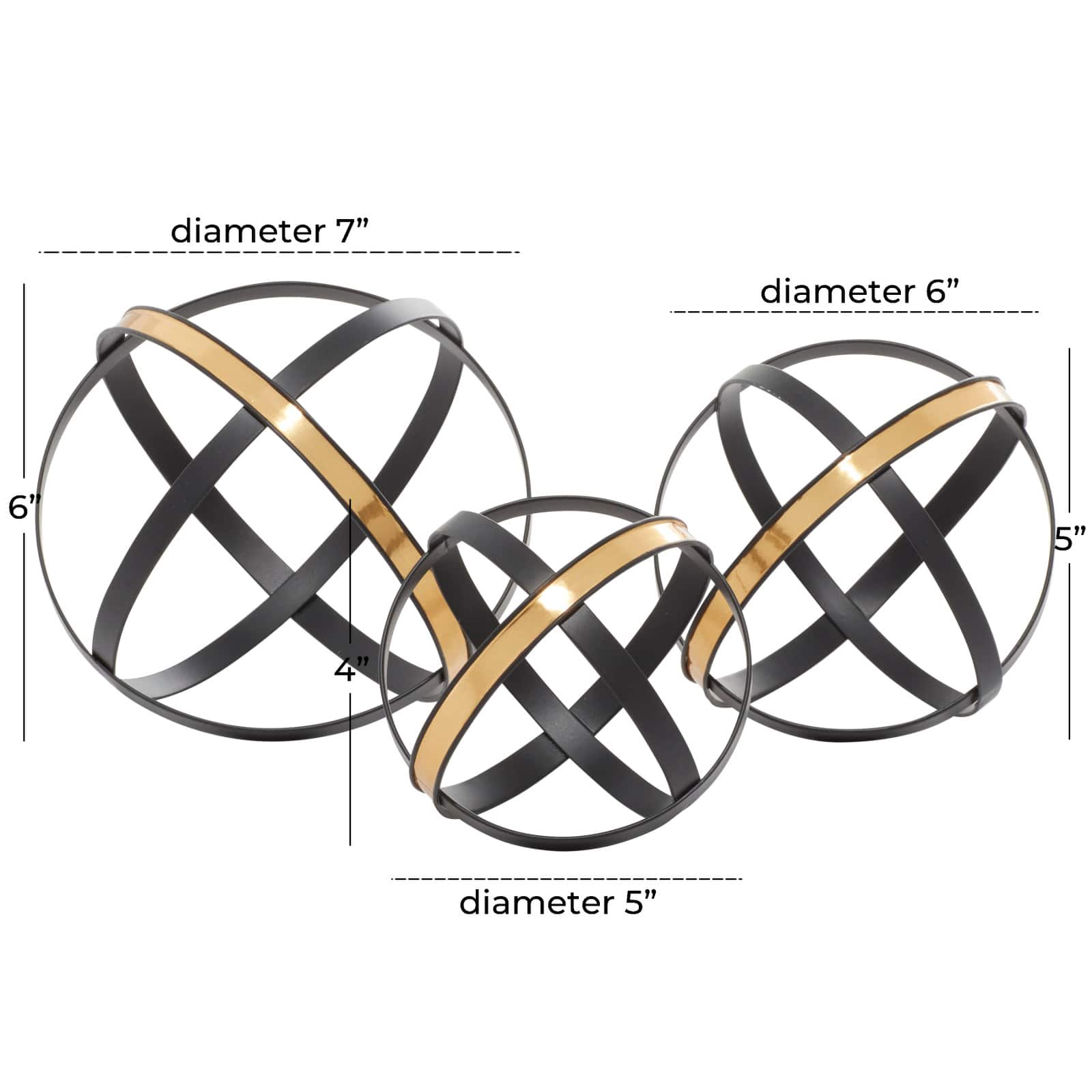 Black & Gold Metal Contemporary Orb Sculpture Set