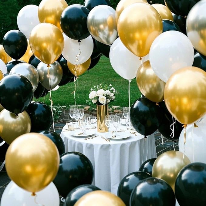 Black Gold White Confetti Balloon Set,100pcs 12 Inch Metallic Gold and Black White Glitter Confetti Balloon for Wedding, Birthday, Graduation Party Decorations,Happy New Year Decorations