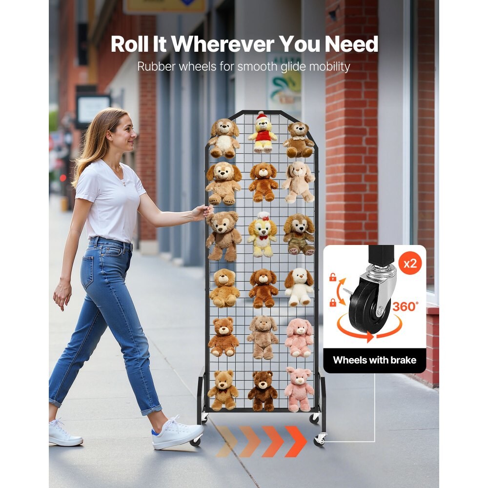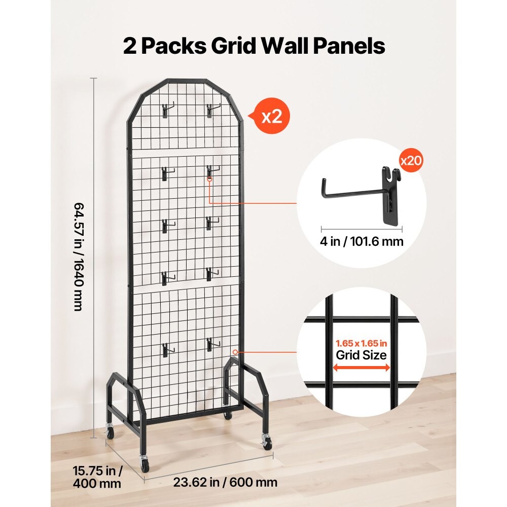 Black Grid Wall Panel Set Heavy Duty Carbon Steel Display Rack with 6 Panels and Casters