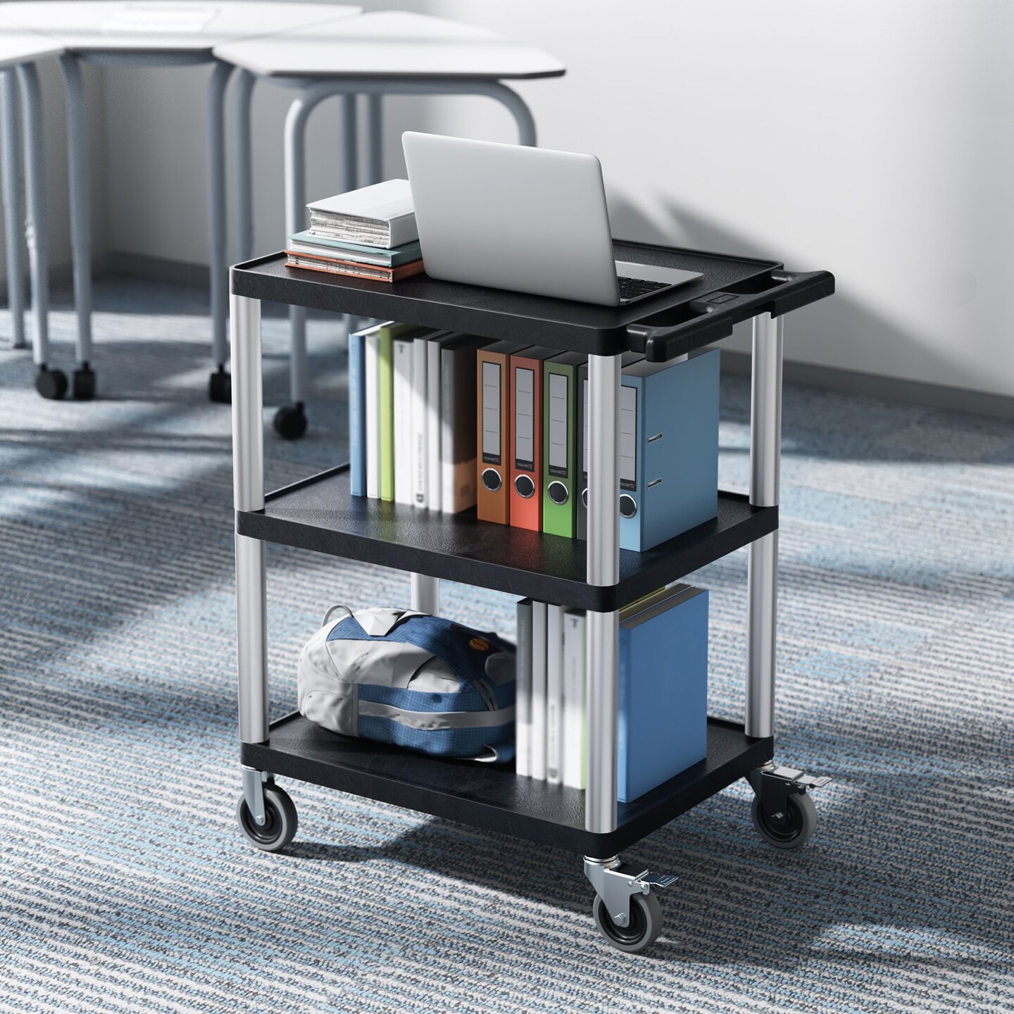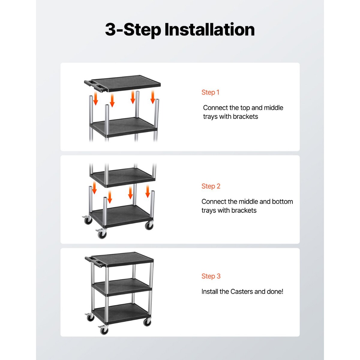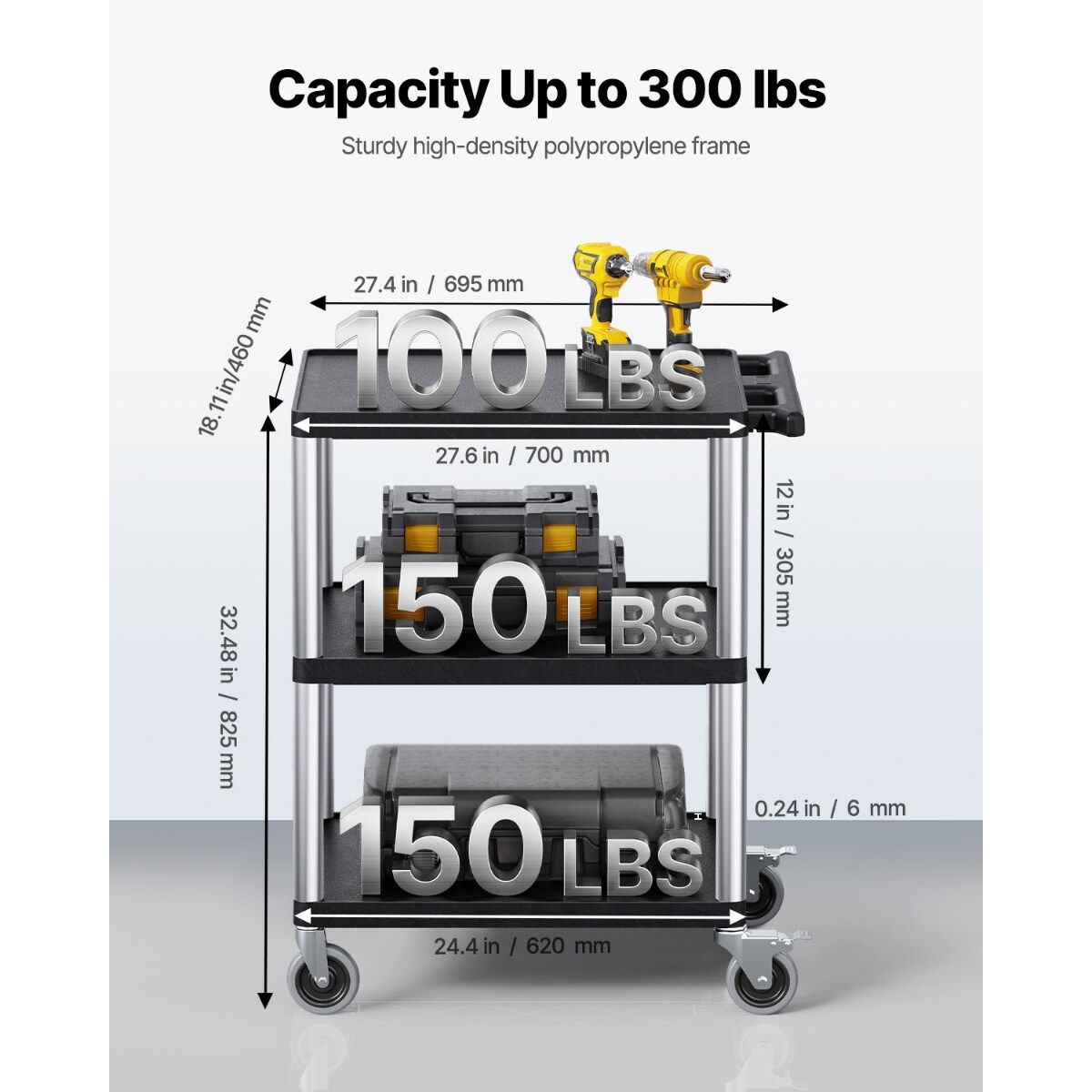 Black Heavy-Duty 2-Tier Metal Utility Cart with Tool Racks and Pegboard Hooks, Cup Holder