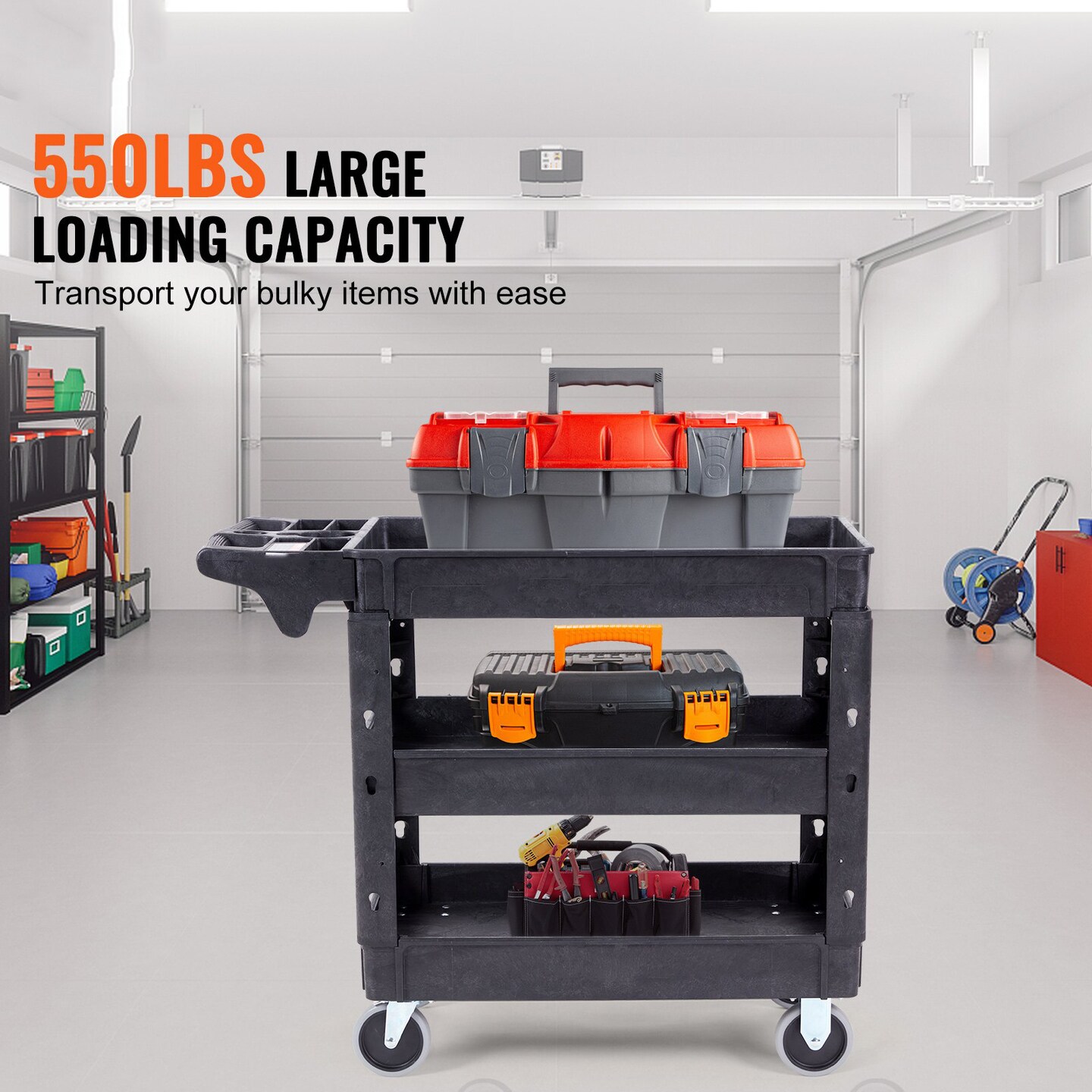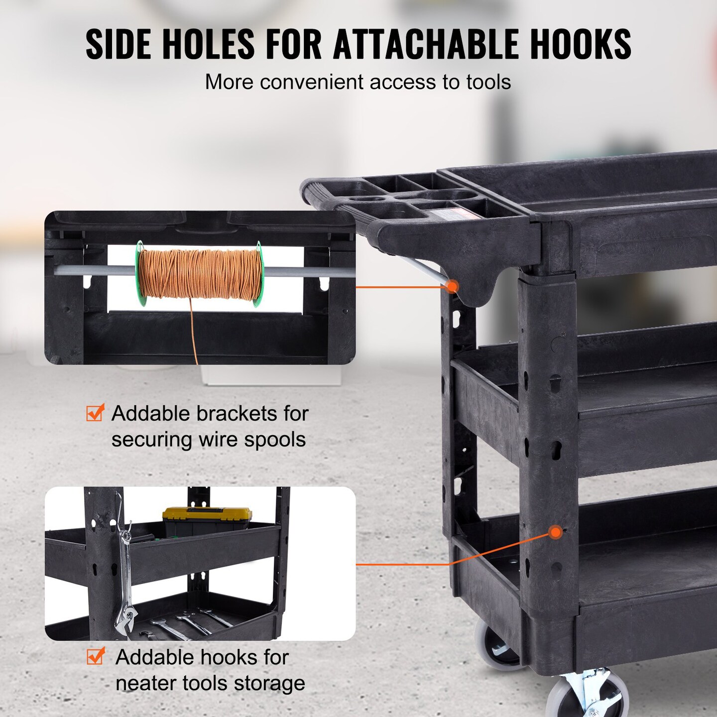 Black Heavy-Duty 3 Shelf Utility Cart with Lockable Swivel Wheels and Ergonomic Handle