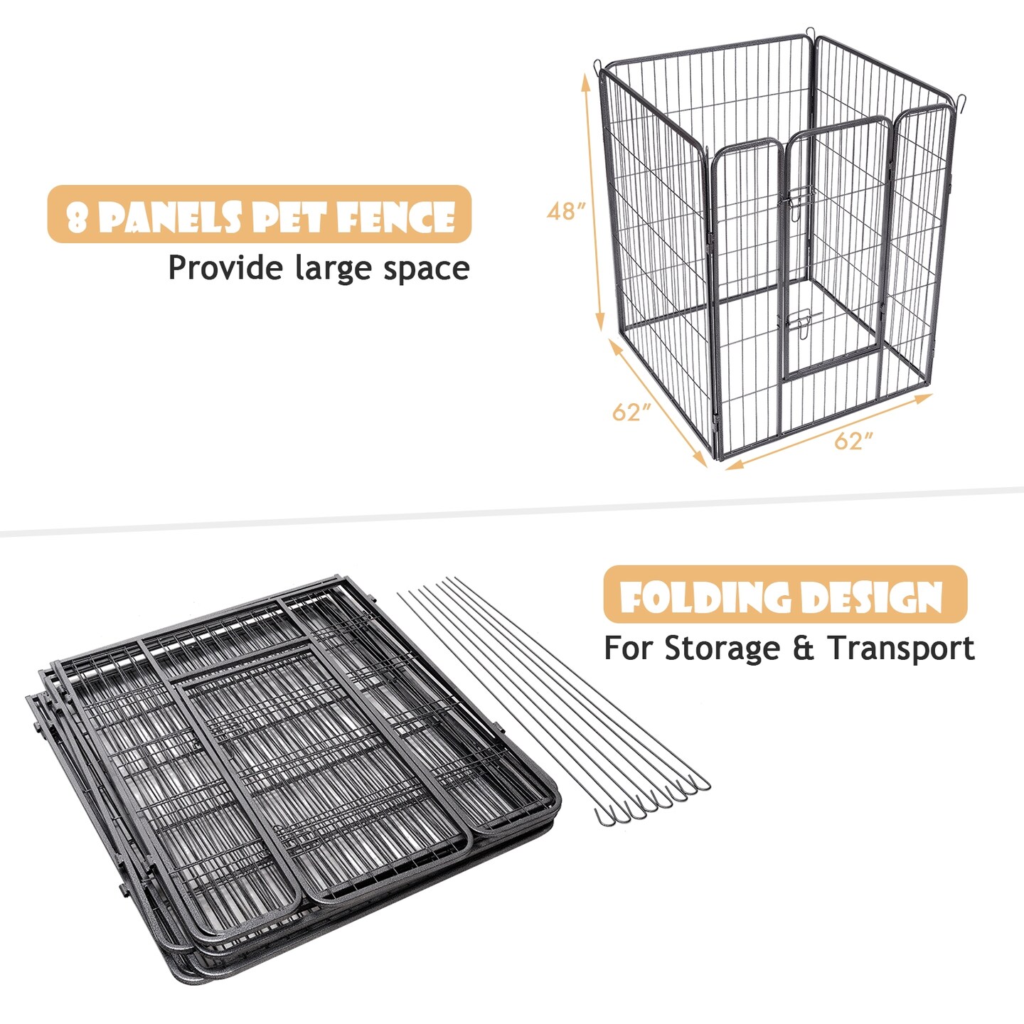 Black Iron Pet Playpen 8-Panel with Door Indoor Outdoor Safe Enclosure