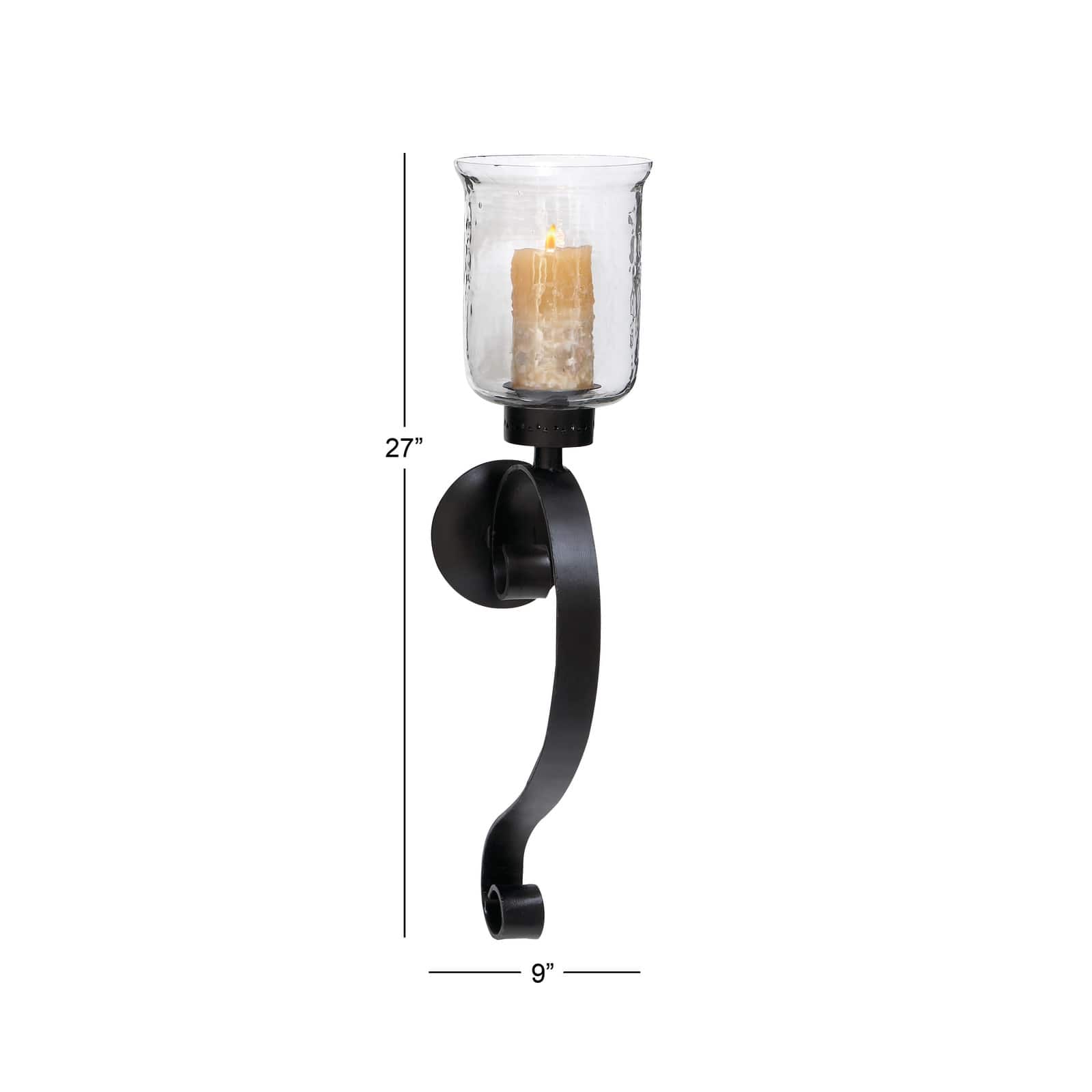 Black Iron Traditional Candle Wall Sconce, 27" x 9" x 7"