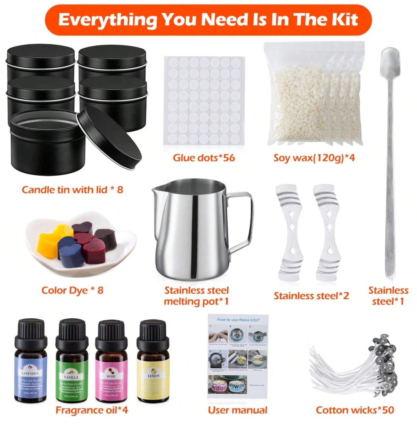 Black Jar Essential Oil Candle Making Kit – 134‑Piece Complete DIY Soy Wax Set with Tools for Beginners & Handmade Gifts