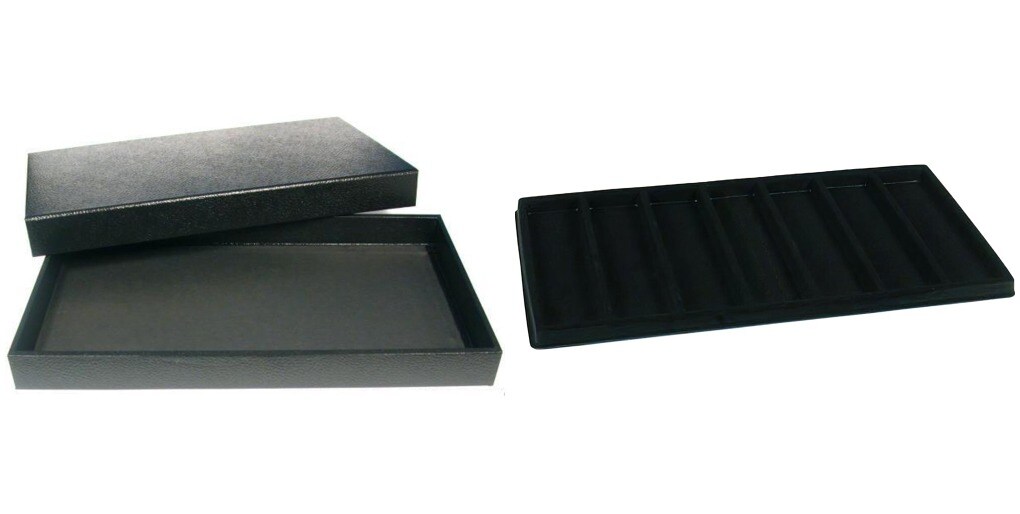 Black Jewelry Display Case (Removable Magnetic Lid) w/ Black 7-slot Plastic Tray