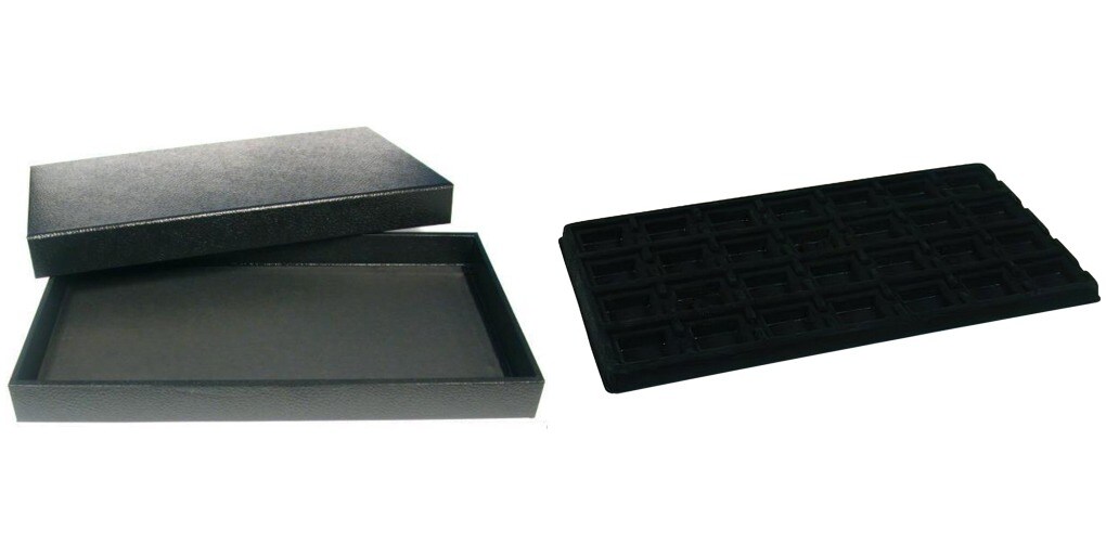 Black Jewelry Display Case (Removable Magnetic Lid) w/ Blck 28-slot Plastic Tray