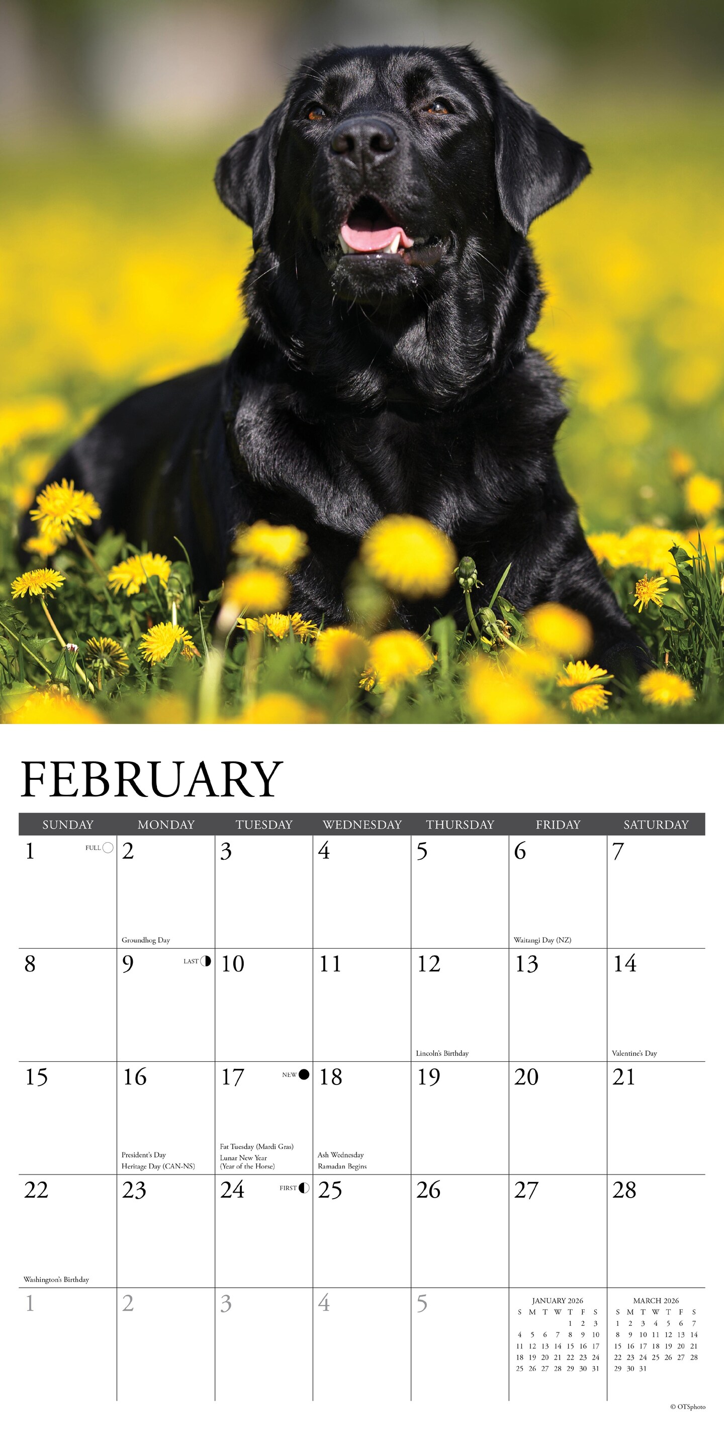 Black Labs 2026 Wall Calendar