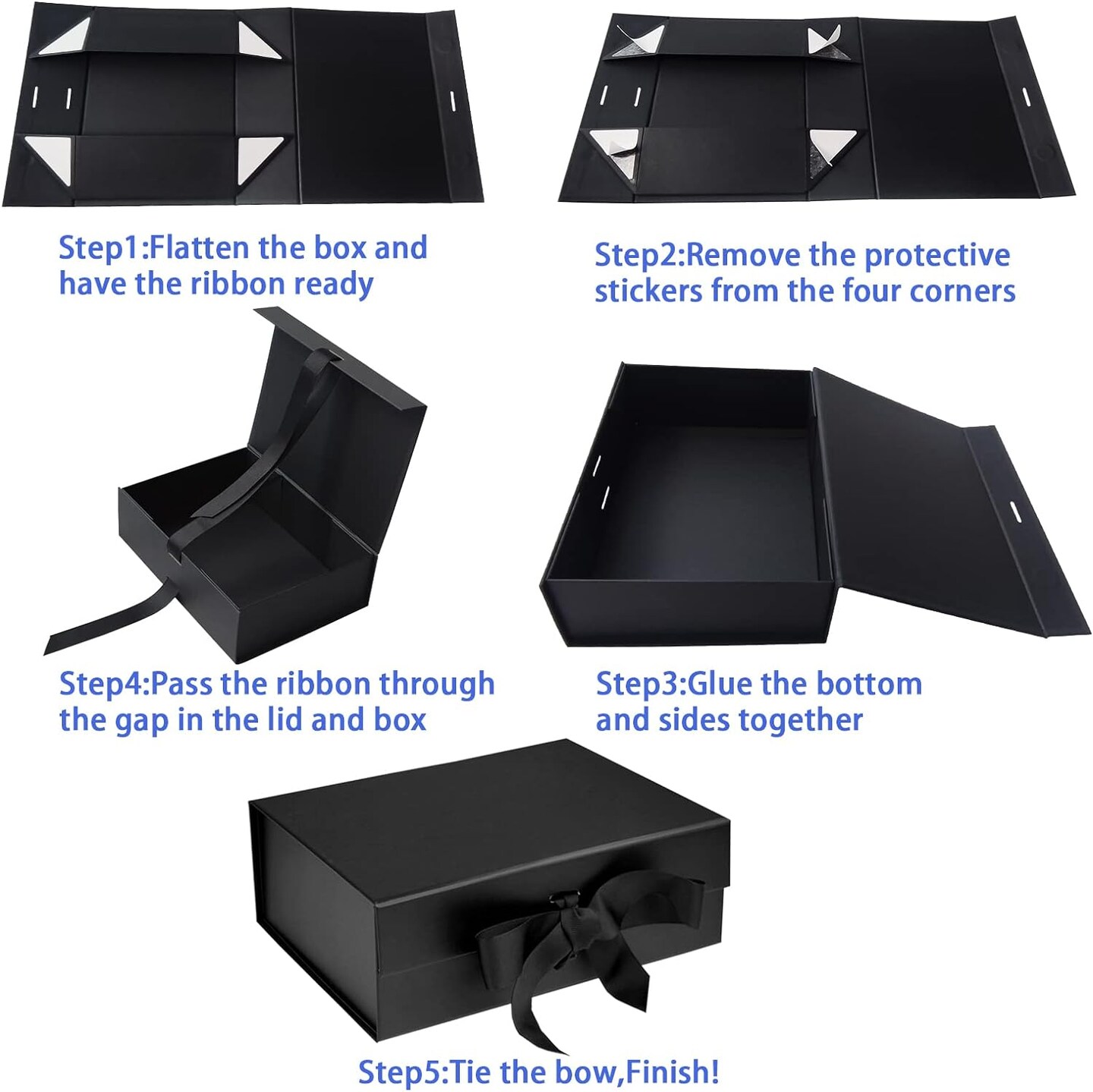 Black Luxury Magnetic Gift Box with Lid – Medium 9.4"x7"x3" | Includes Ribbons & Gift Bag, Perfect for Christmas, Weddings, Birthdays & Men (Black)