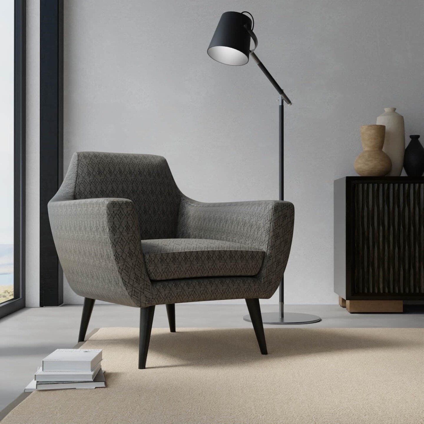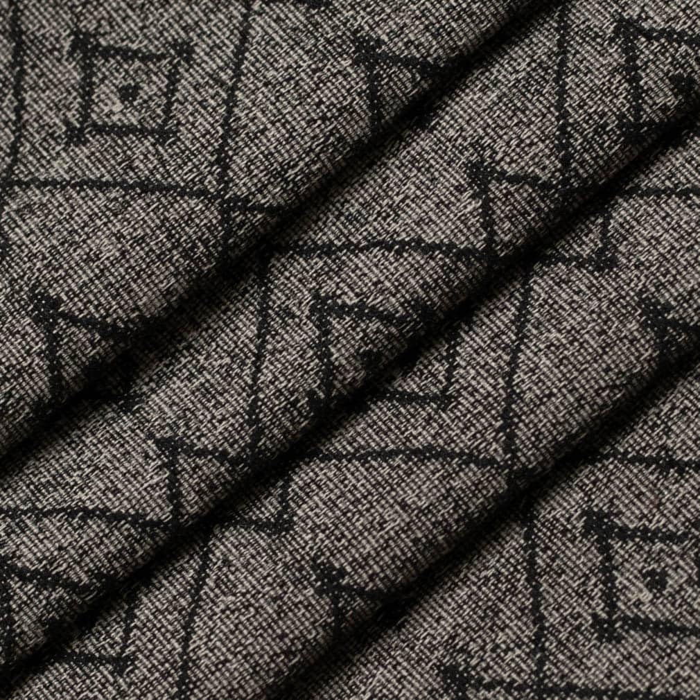 Black Made in America Diamond Global Geometric Woven Pattern Upholstery Fabric by The Yard - SKU: Benton Shadow