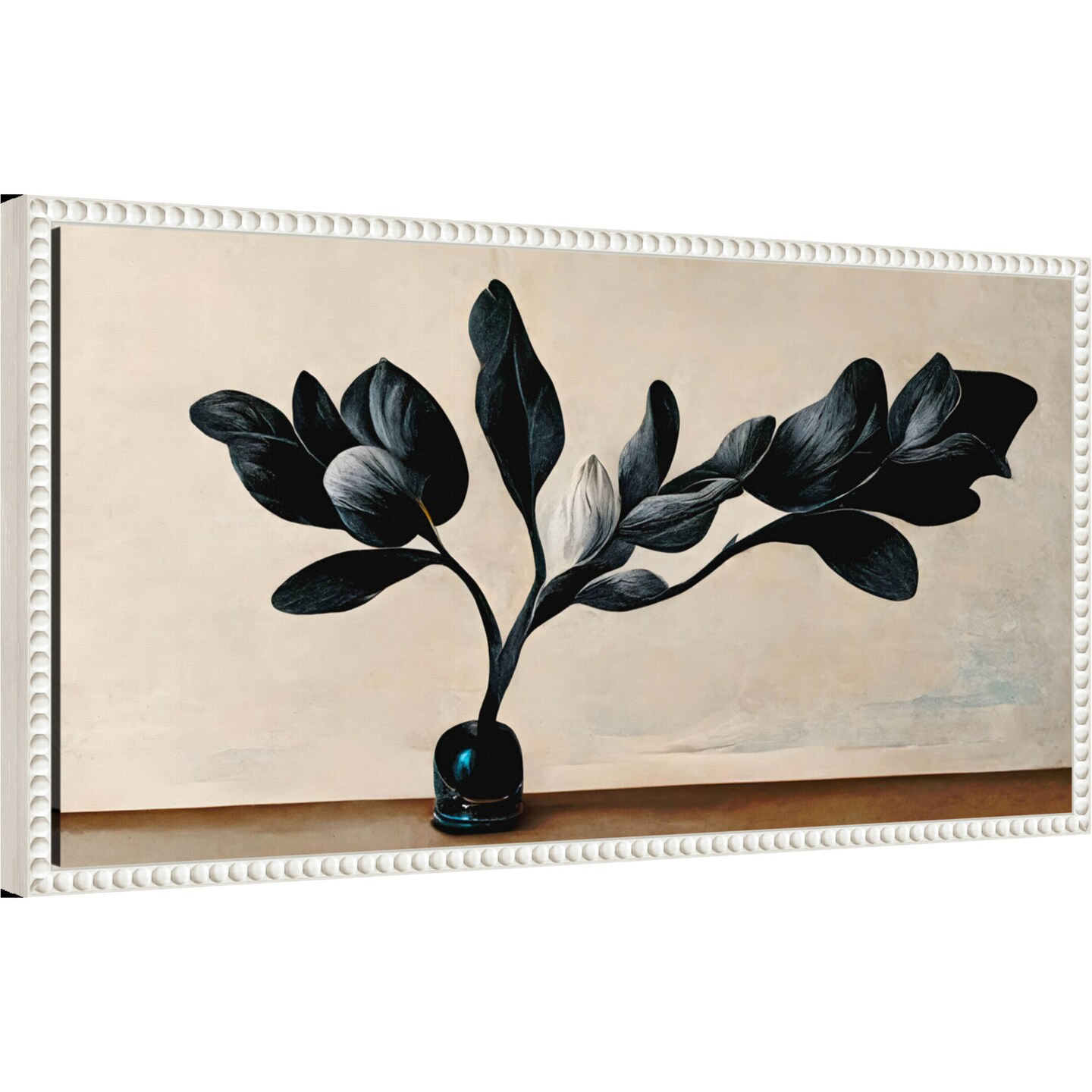 Black Magnolia by Treechild 27-in. W x 14-in. H. Canvas Wall Art Print Framed in White