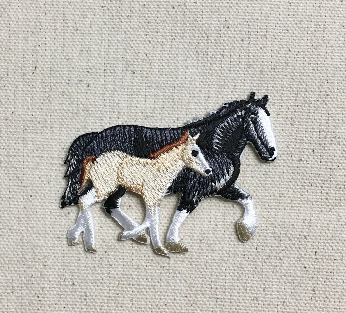 Black Mare & Buckskin Colt Horses, Embroidered, Iron on Patch