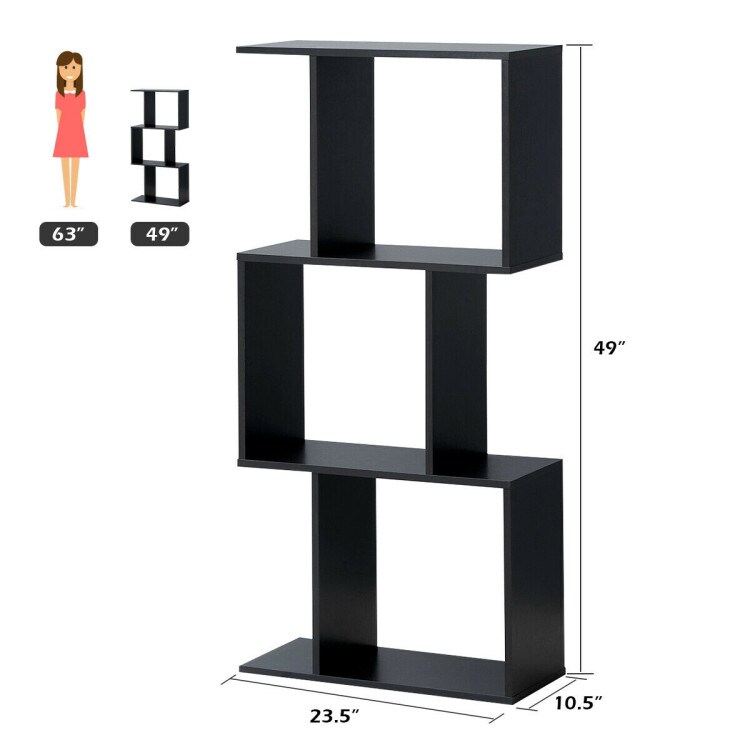 Black MDF Particle Board S-Shaped Bookcase and Display Rack