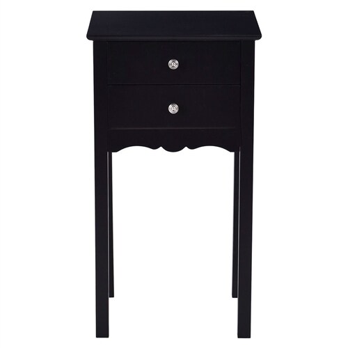 Black MDF Wood 2-Drawer Side End Table Nightstand with Storage Drawers for Bedroom or Living Room