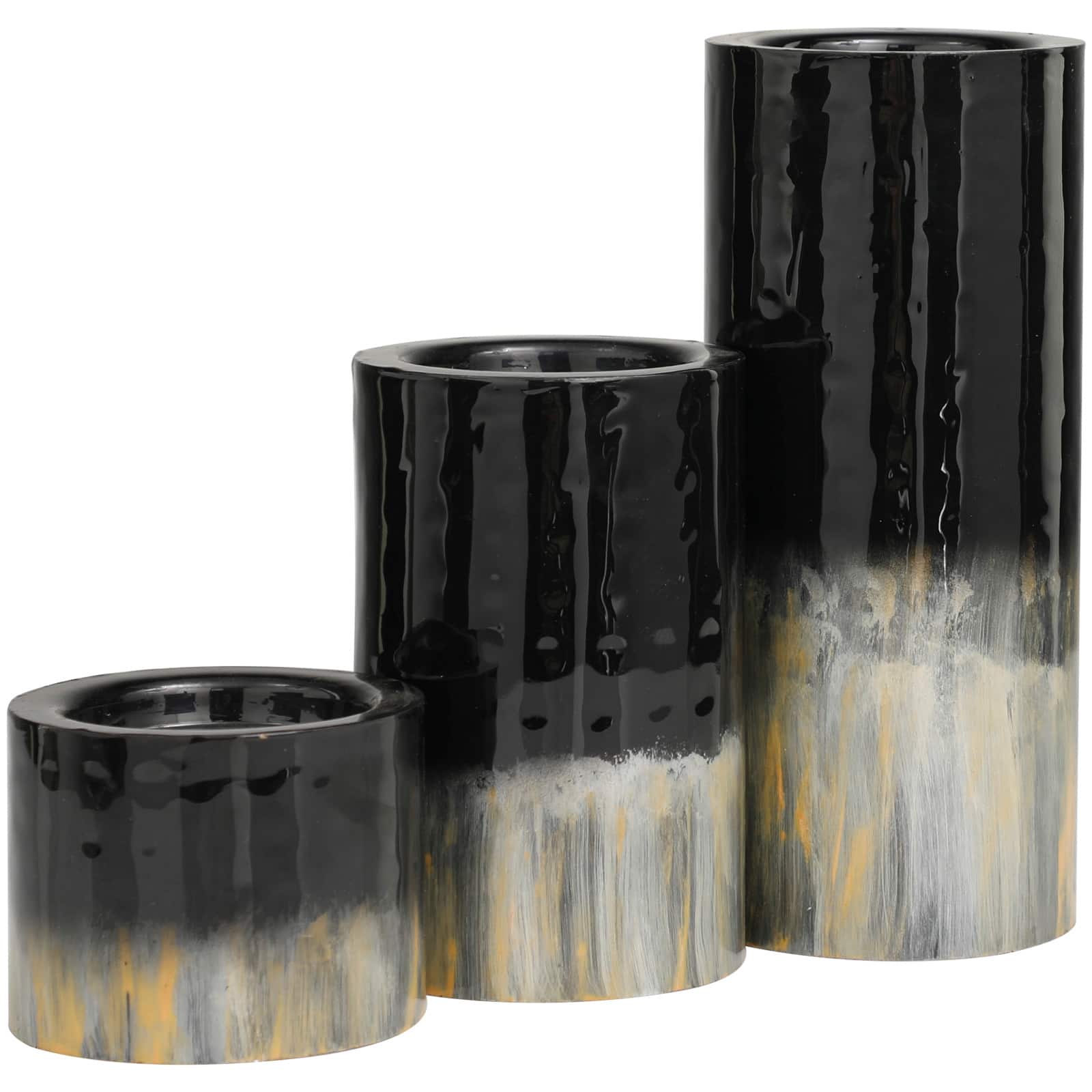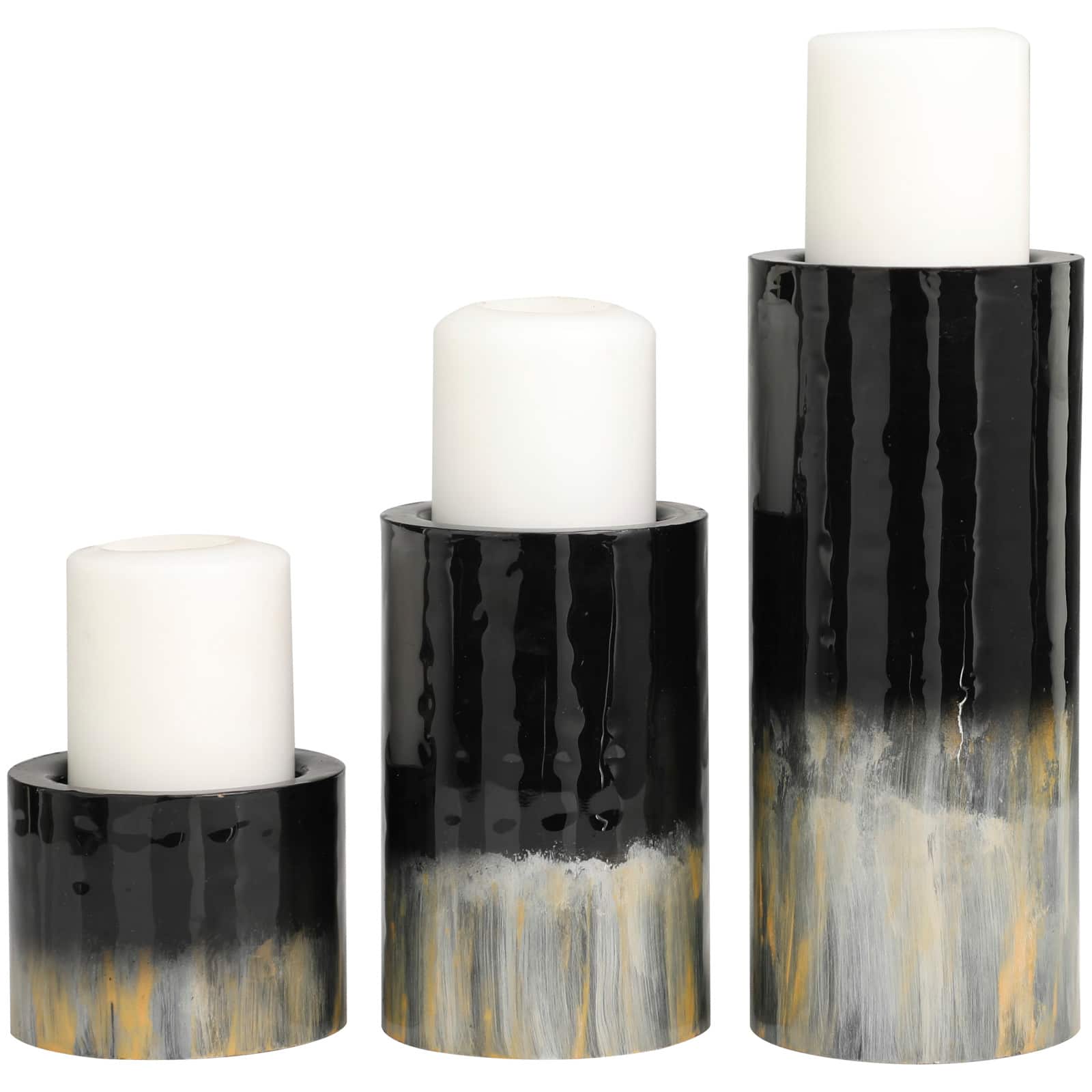 Black Metal Colorblock Candle Holder with Gold and Silver Streaks Set