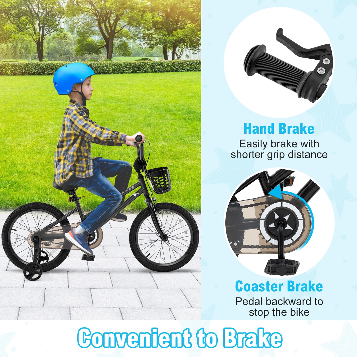 Black Metal Kids Bike with Dual Brakes and Basket, Training Wheels