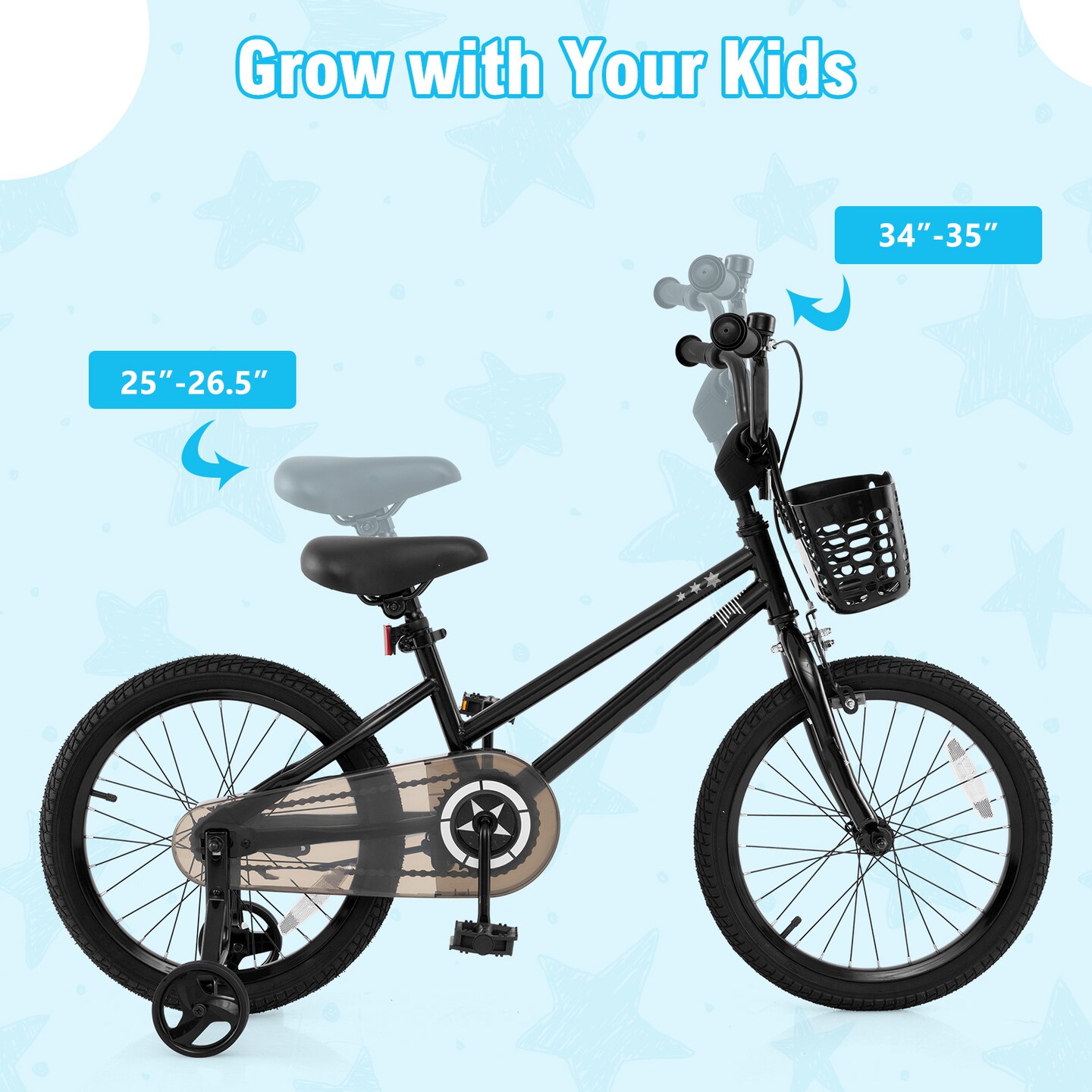Black Metal Kids Bike with Dual Brakes and Basket, Training Wheels