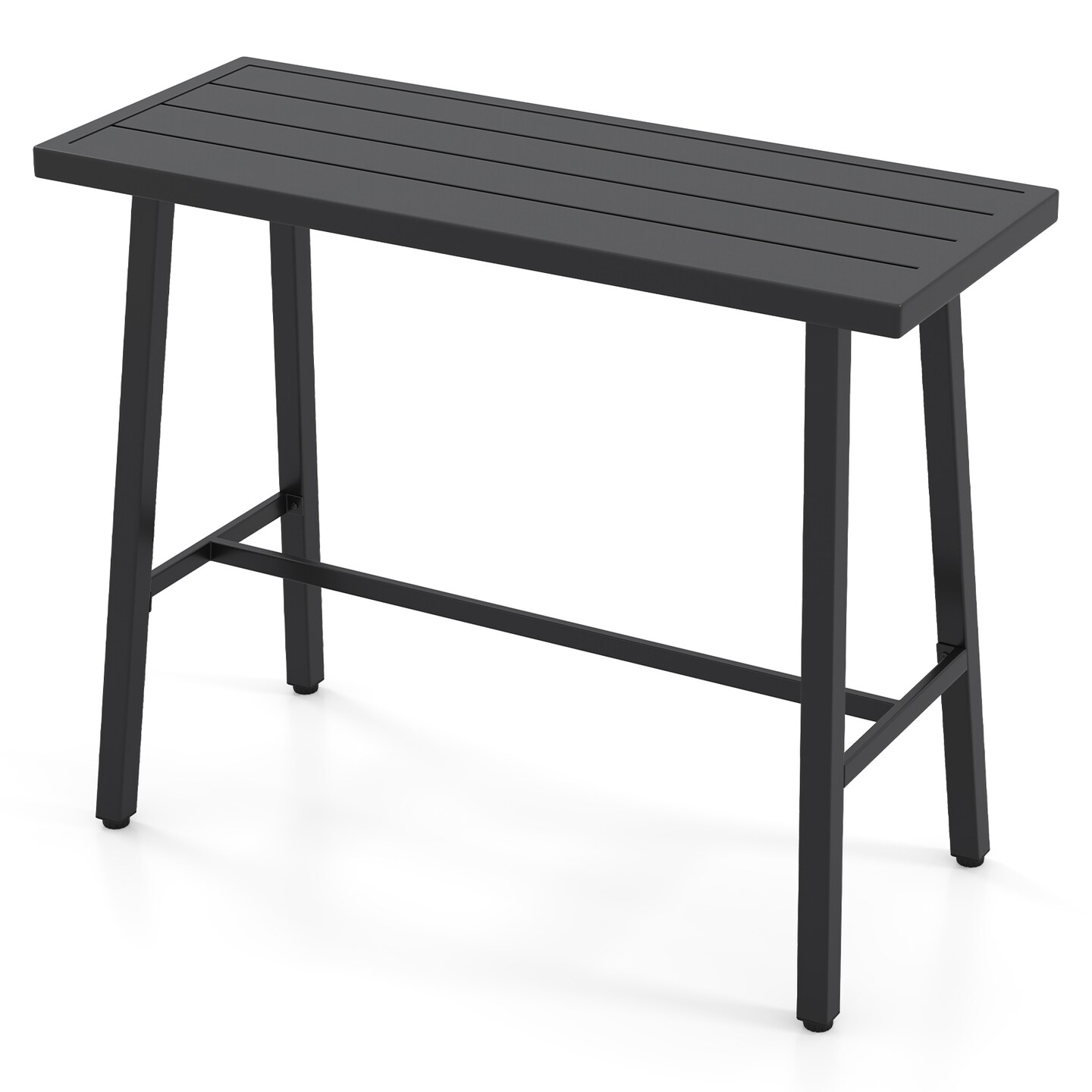 Black Metal Patio Counter Height Table with Footrest, Adjustable Foot Pads