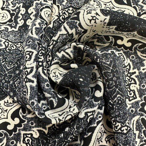 Black Multi Novelty Print Poly Georgette Fabric By the Yard