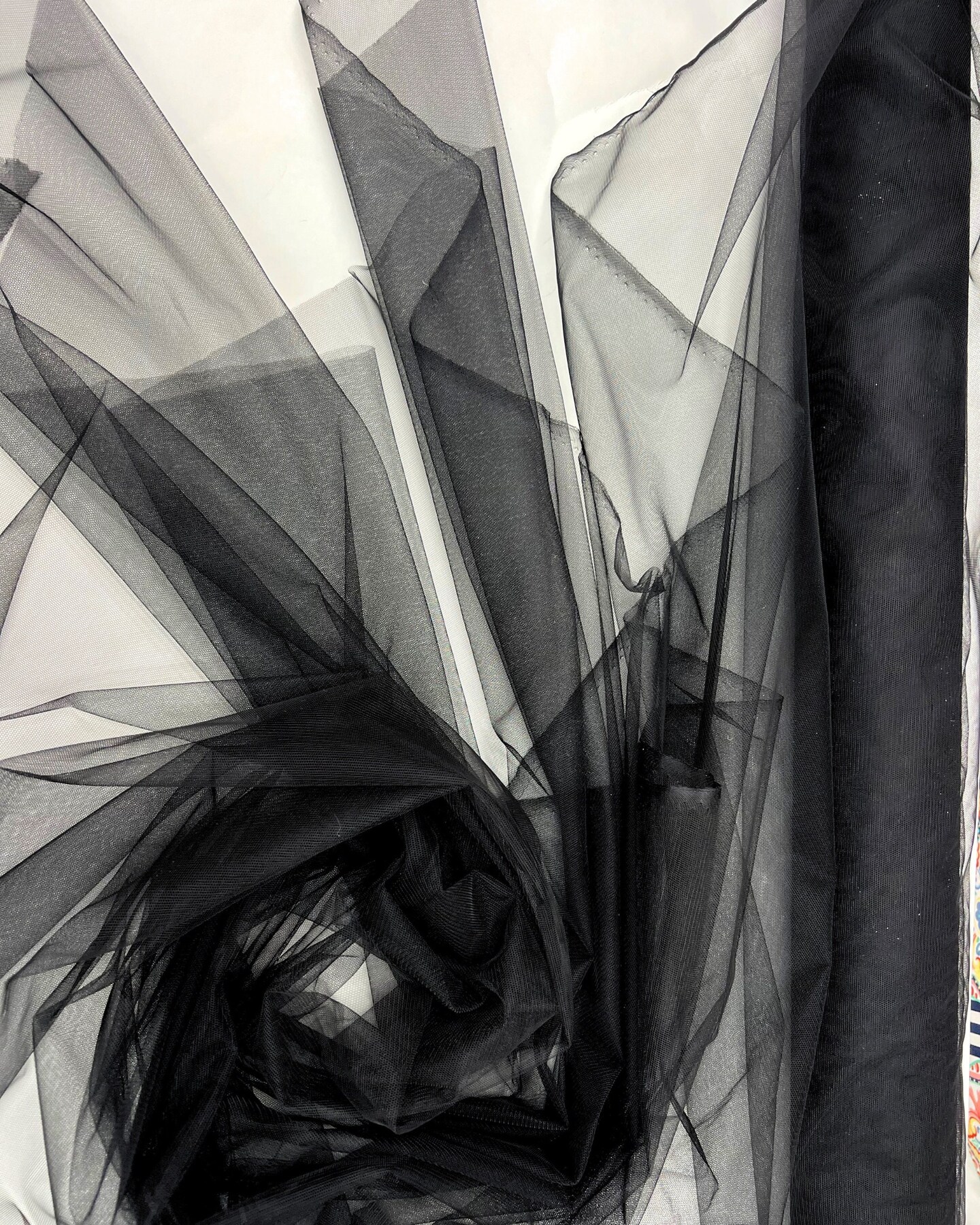 Black Nylon Tulle Fabric by the Yard, 63" Wide Soft Stretch Mesh Fabric for Veils, Wedding Dresses, Decor & Sewing