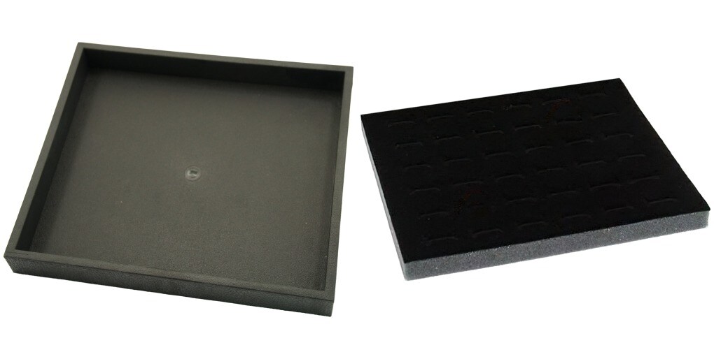 Black Open Square Stackable Jewelry Display Tray w/ Black 36-slot Foam Insert