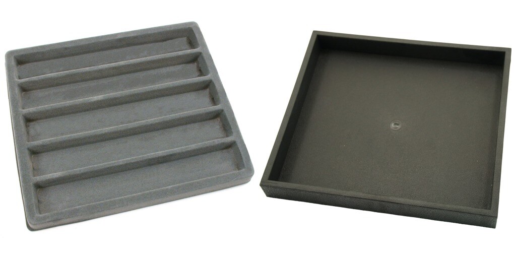 Black Open Square Stackable Jewelry Display Tray w/ Gray 5-slot Plastic Tray