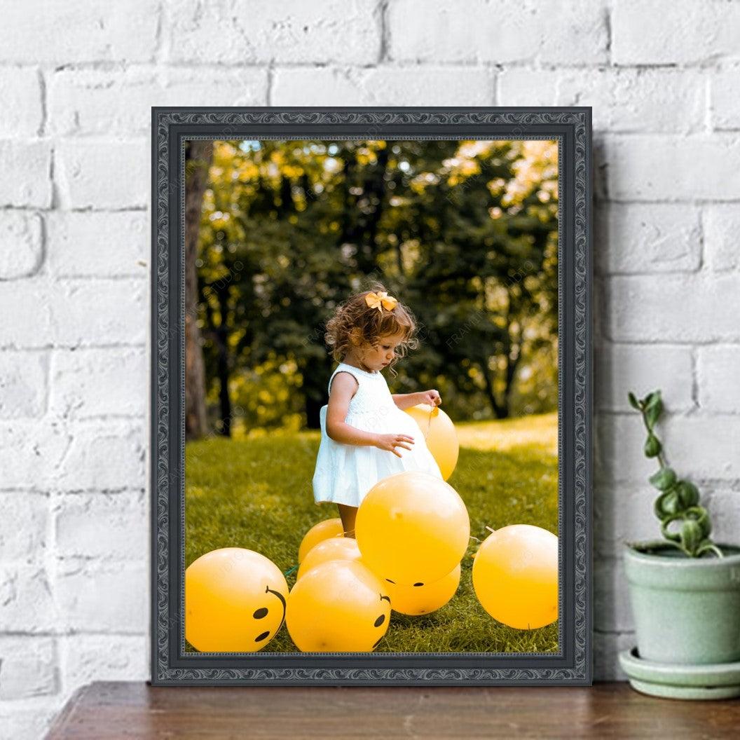 Black Ornate Antique Picture Frame with Beads