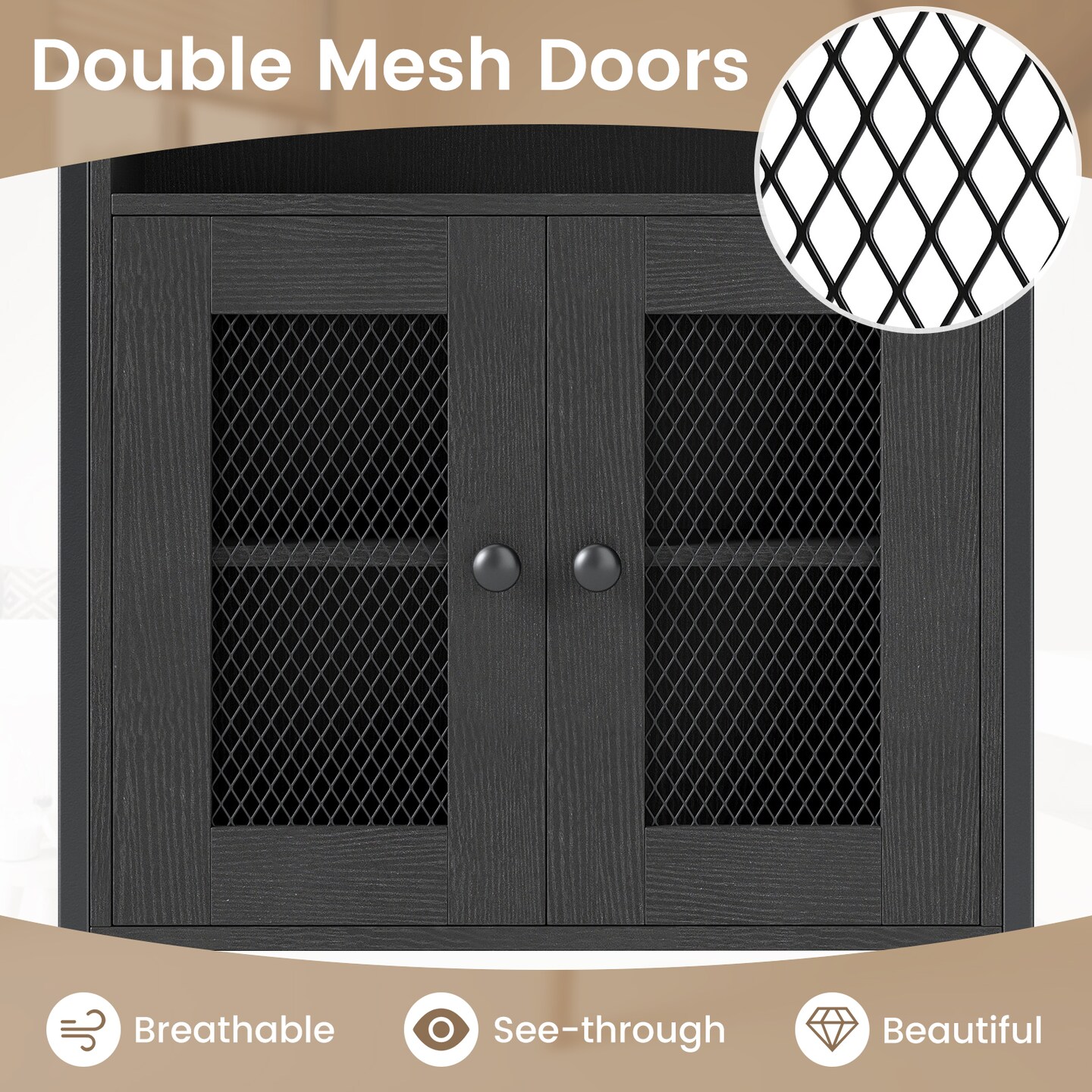Black Over the Toilet Storage Cabinet with Adjustable Shelf and Metal Frame