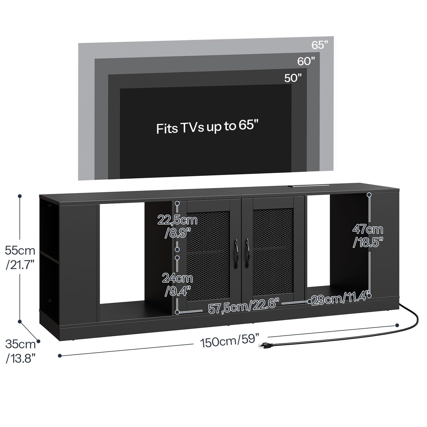 Black Particleboard TV Stand with LED Lights and Charging Station