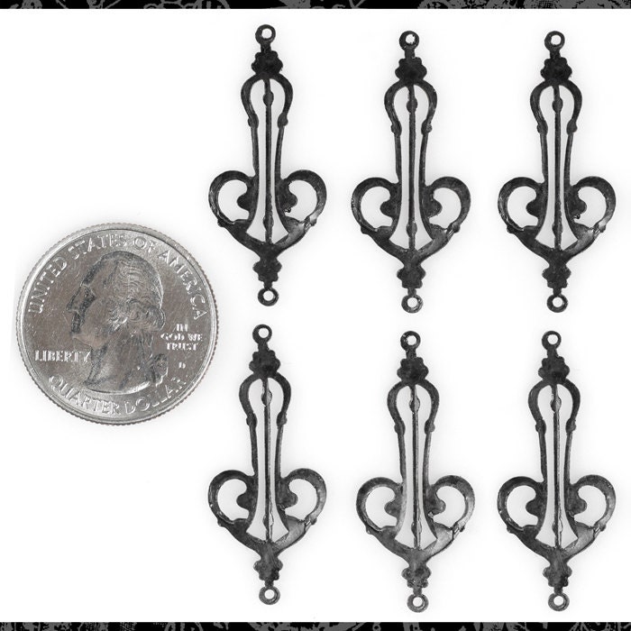 Black Plated Brass Art Deco Heart Harp Connectors - Set of Six - BB-2C39