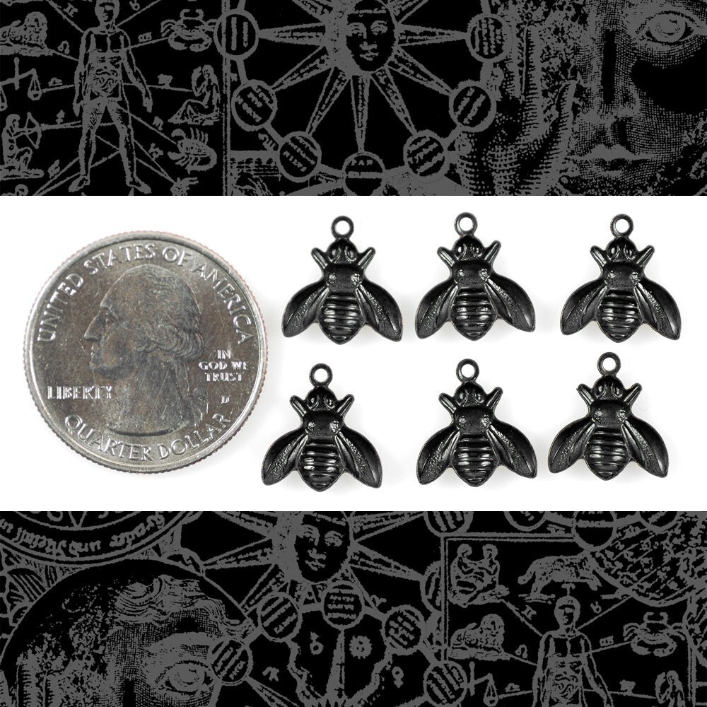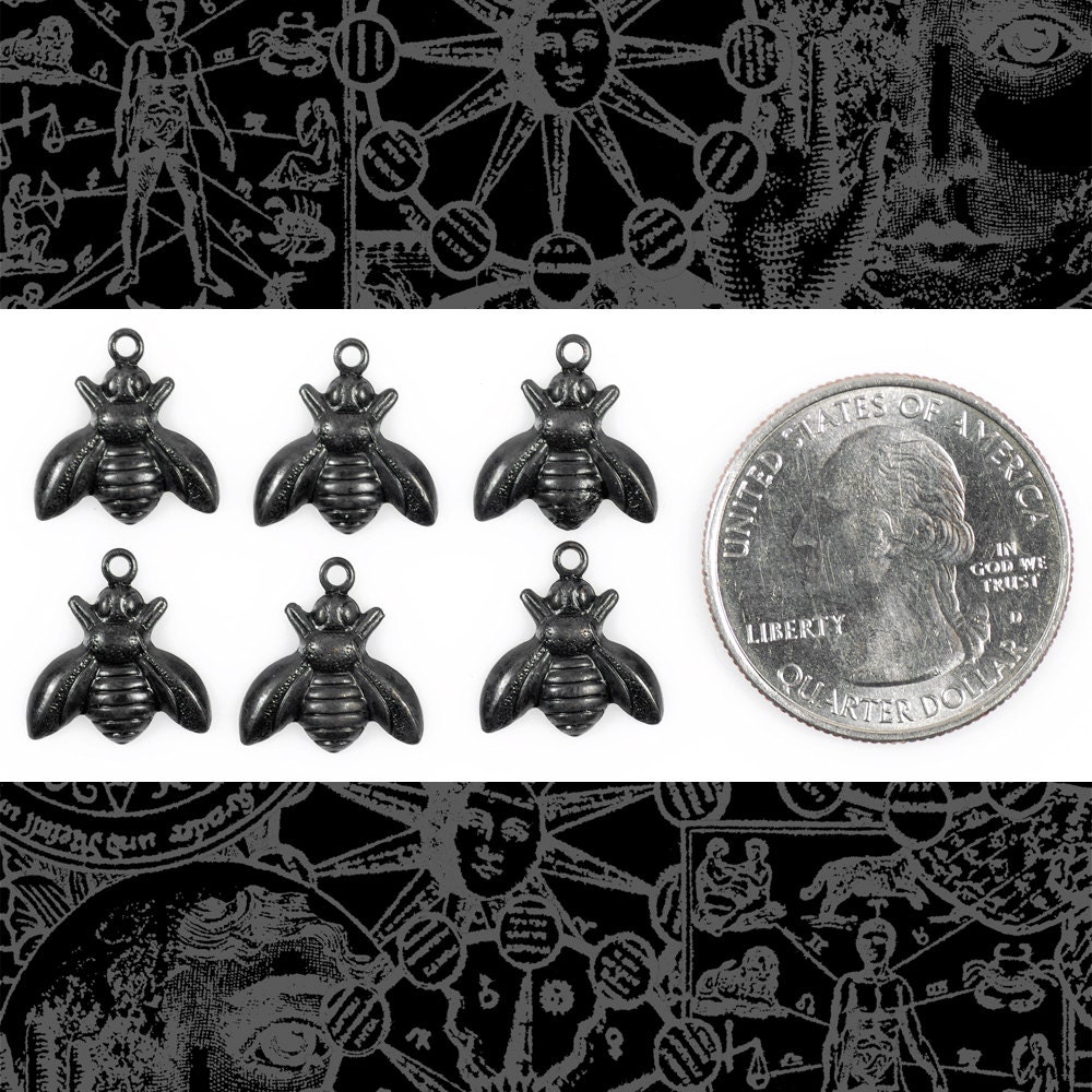 Black Plated Brass Bee Charms - Set of Six - BB-C100