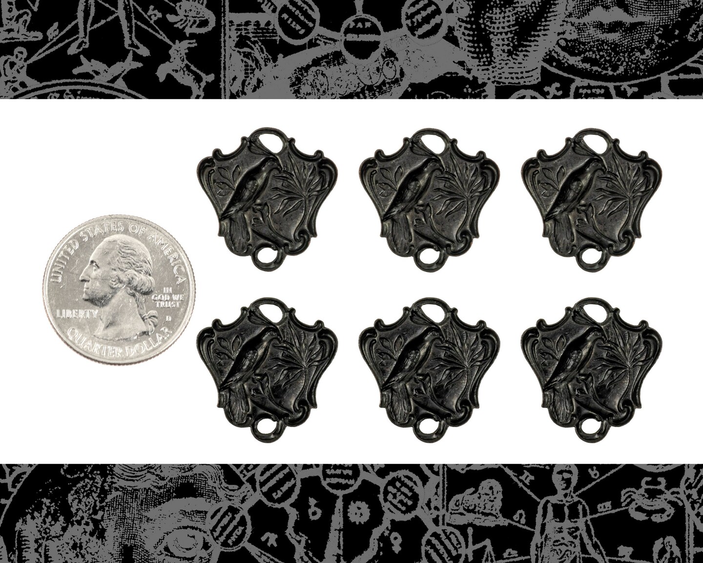 Black Plated Brass Embossed Bird Shield Connectors - Set of Six - BB-2C33