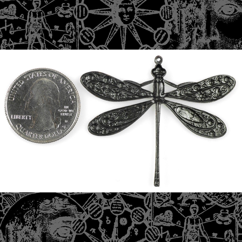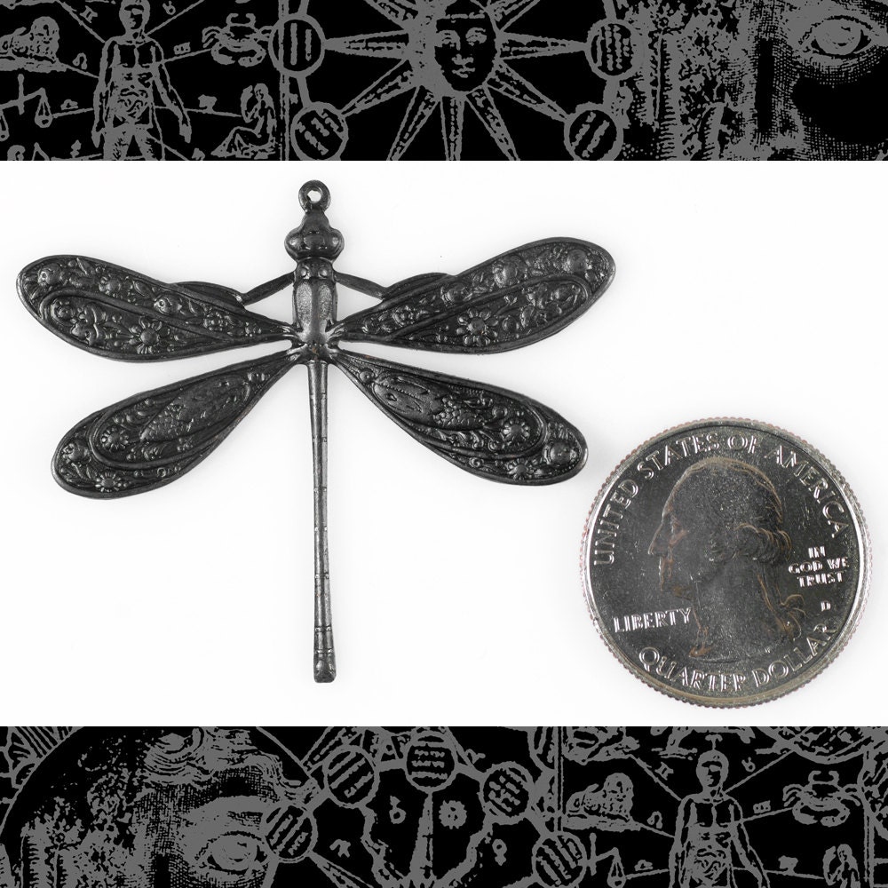 Black Plated Brass Finish Vintage Dragonfly Pendant - BB-P01