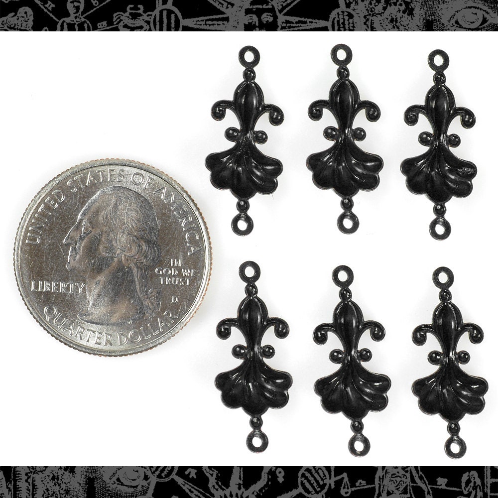 Black Plated Brass Ruffled Connectors - Set of Six - BB-2C16