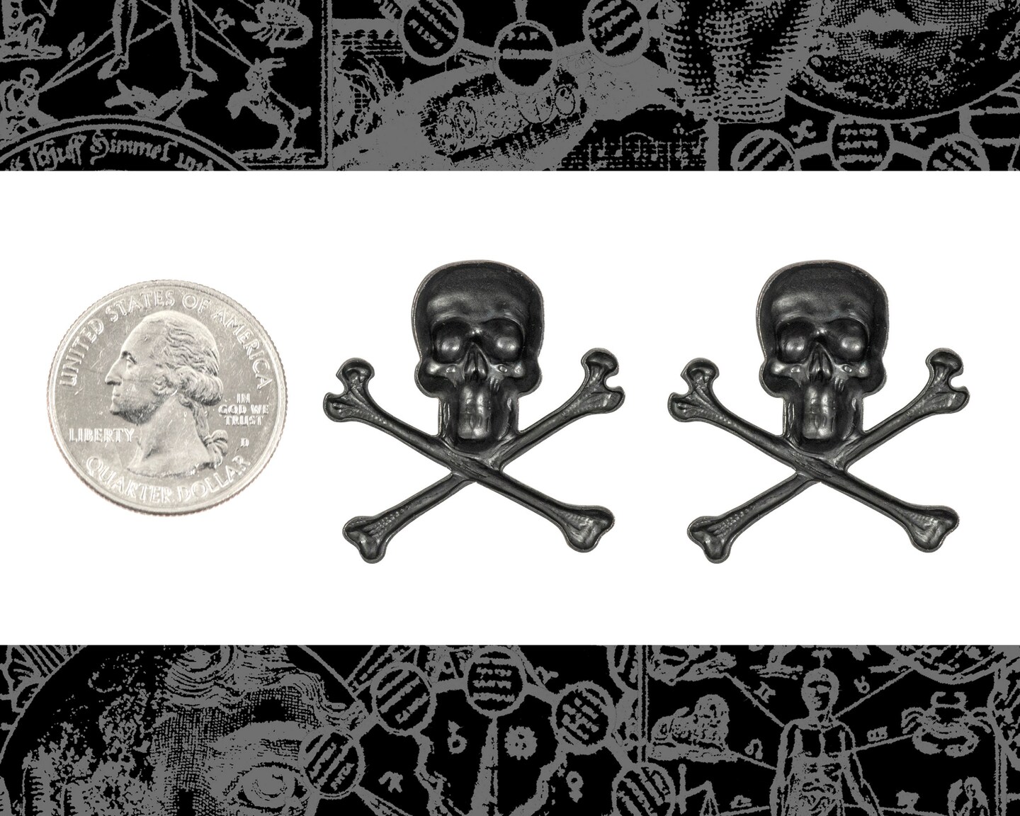 Black Plated Brass Skull and Crossbones Pendants - Set of Two - BB-P25