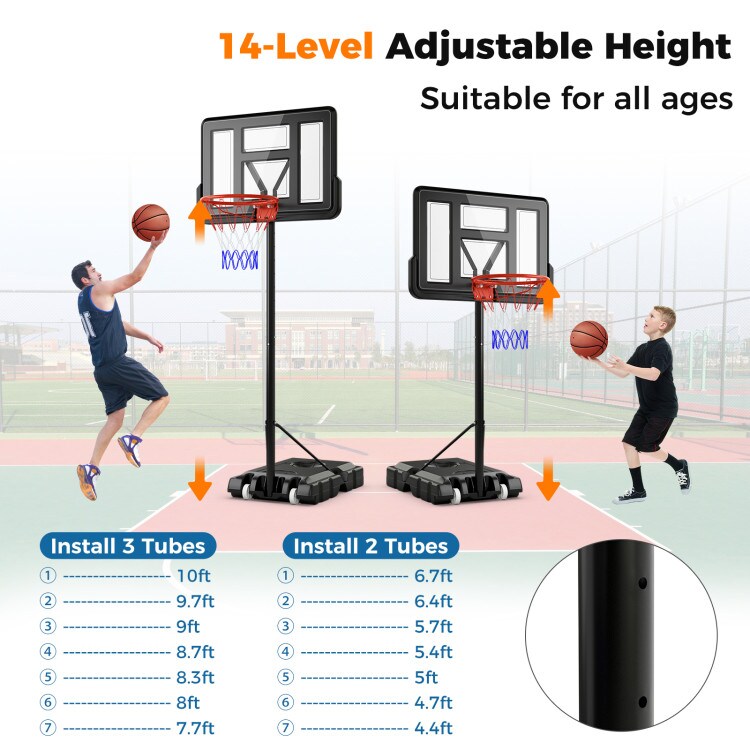 Black Portable 4.4-10FT Adjustable Basketball Hoop with 2 Wheels Fillable Base
