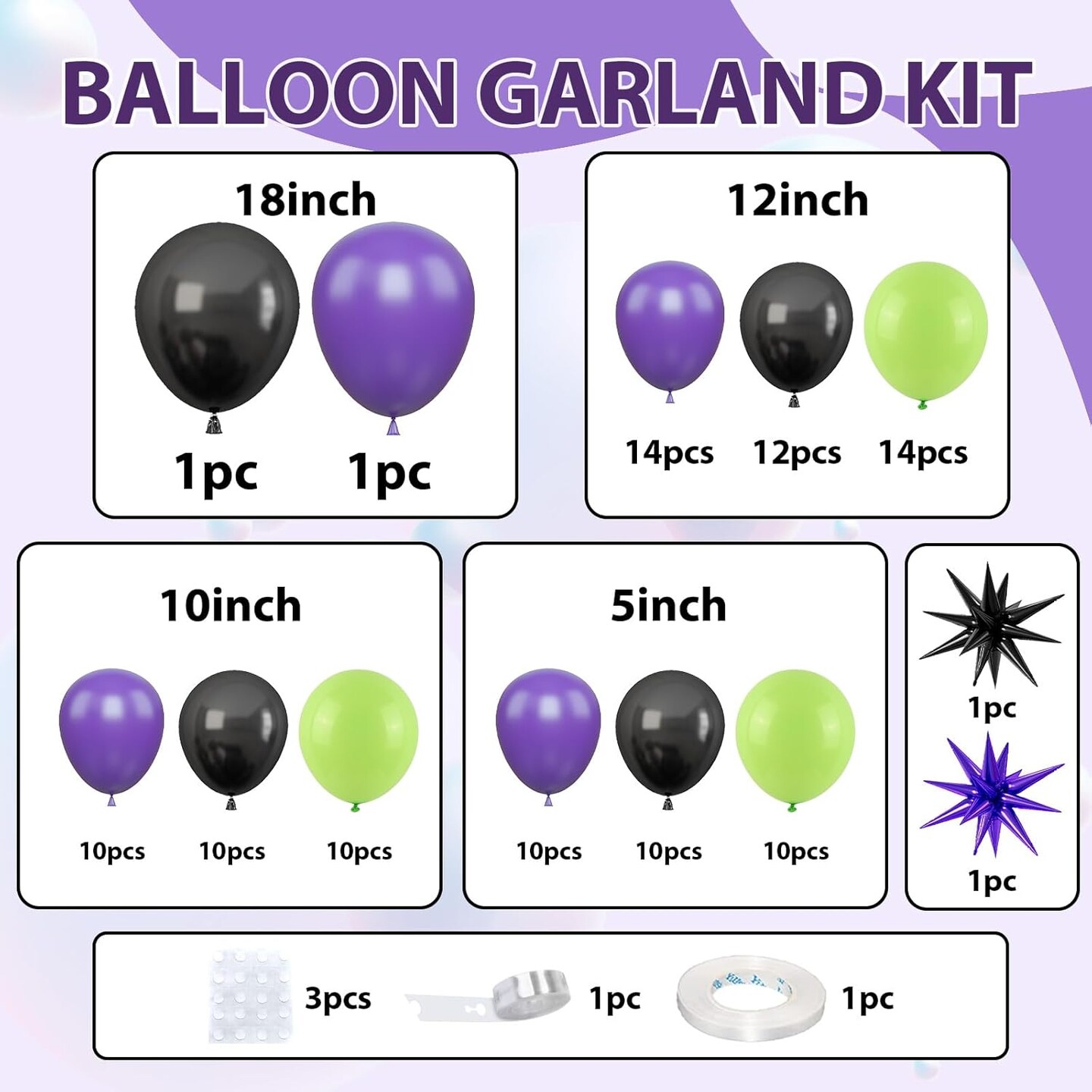 Black Purple Green Balloon Arch Kit, Star Foil Balloons for Kids Boy Monster Theme Birthday Decorations Baby Shower Wedding Anniversary Engagement Graduation Celebrations Party Supplies