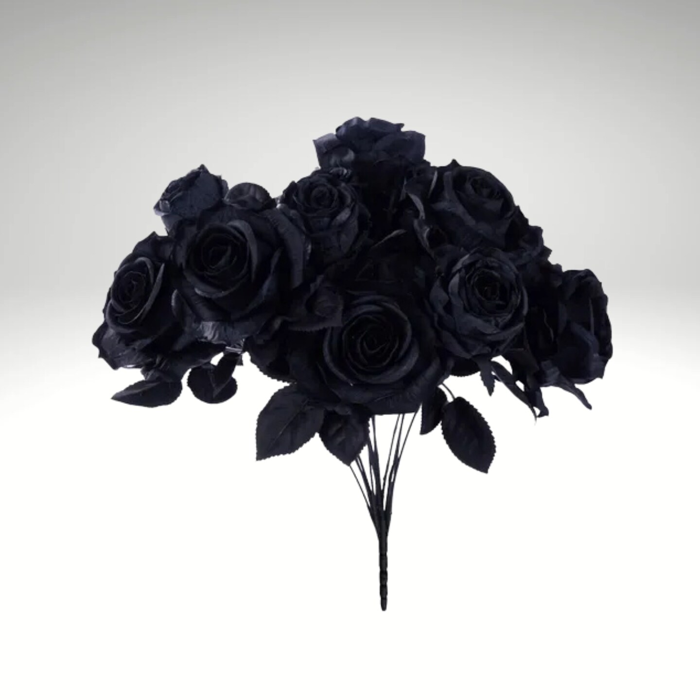 Black Rose Bush – 20" Artificial Fabric Roses & Buds-FN171902