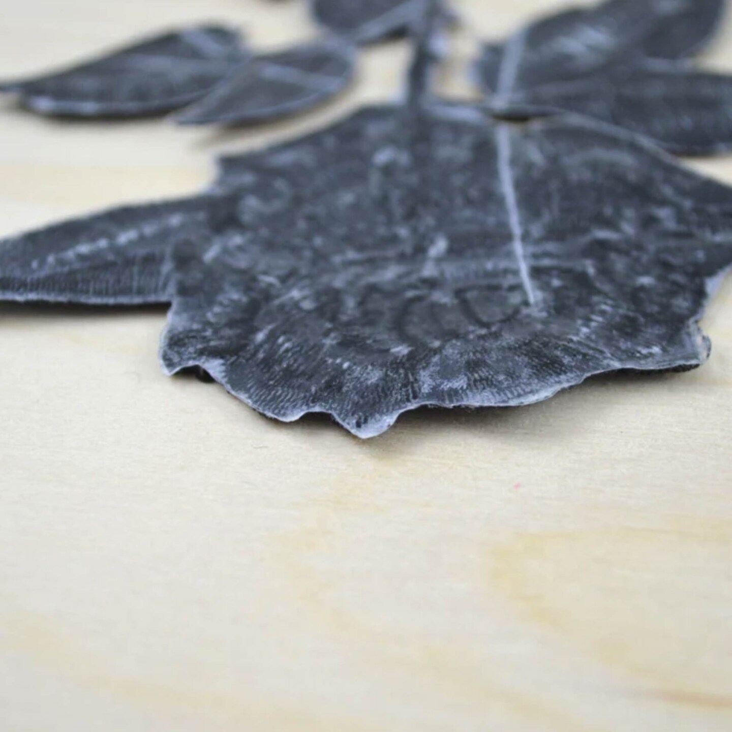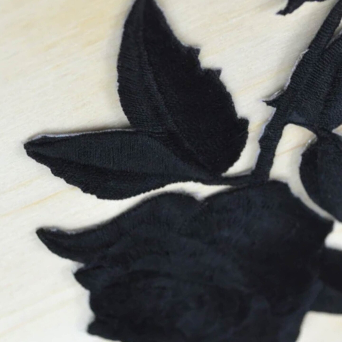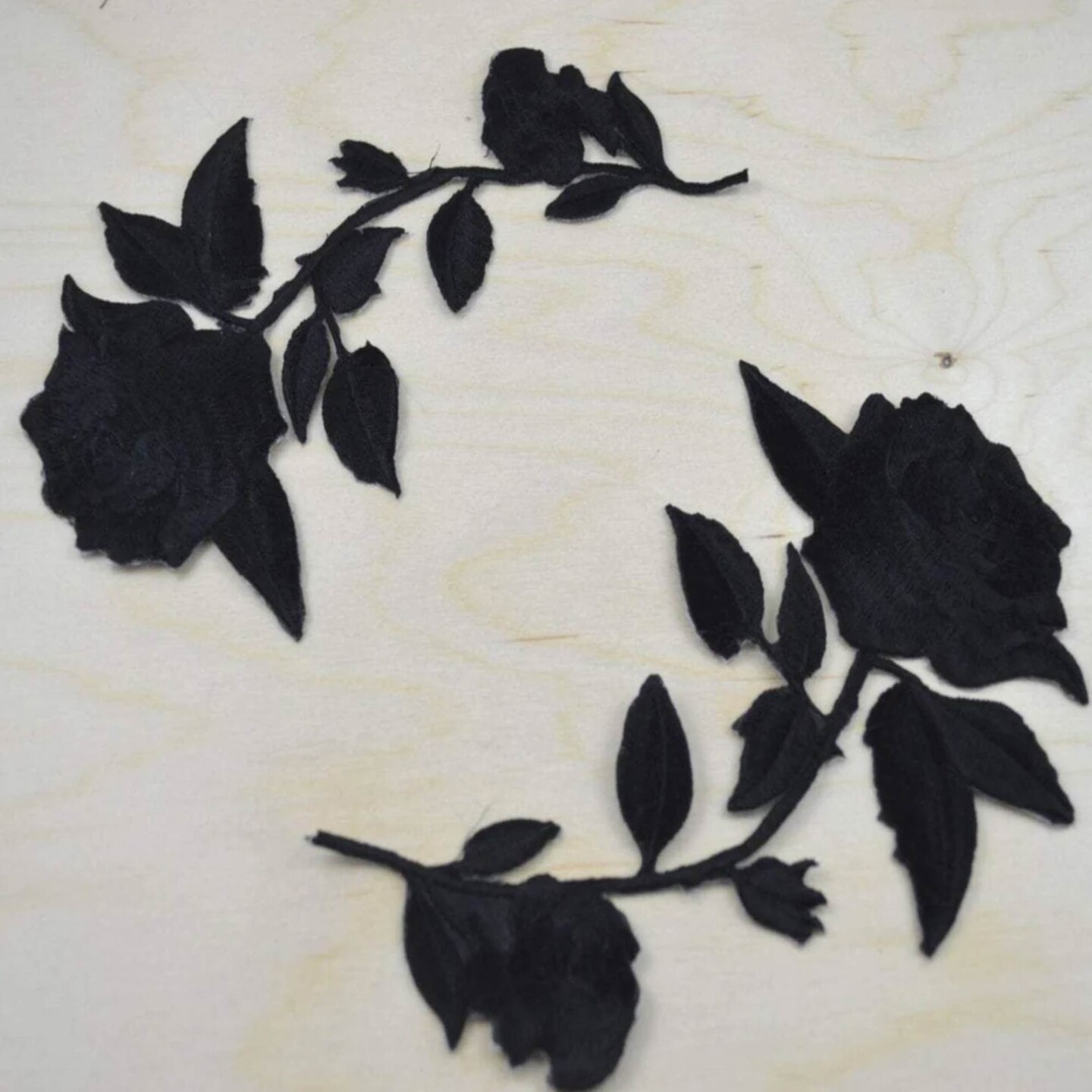 Black Rose Flower Patch Set of 2 Embroidered Iron On Appliques Large 9 x 3 Inch