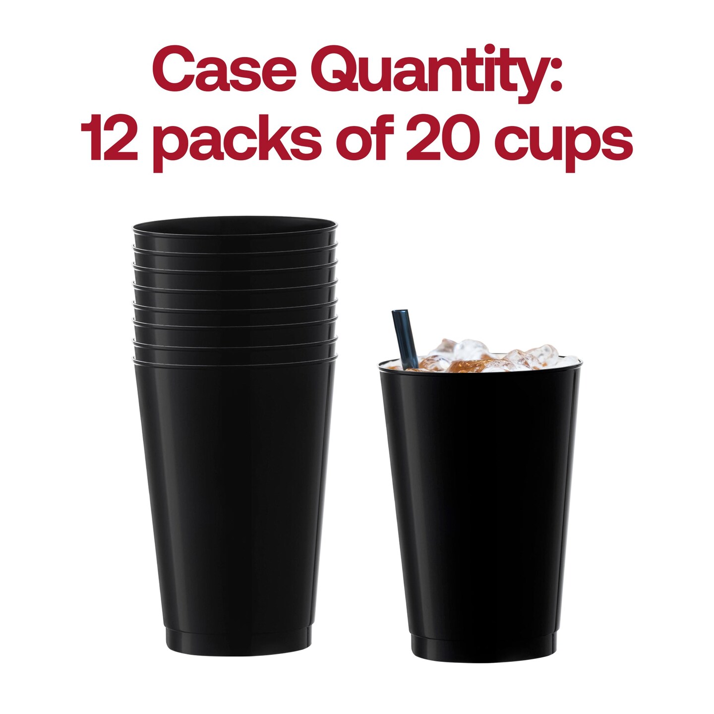 Black Round Disposable Plastic Tumblers - 12 oz. (240 Cups)