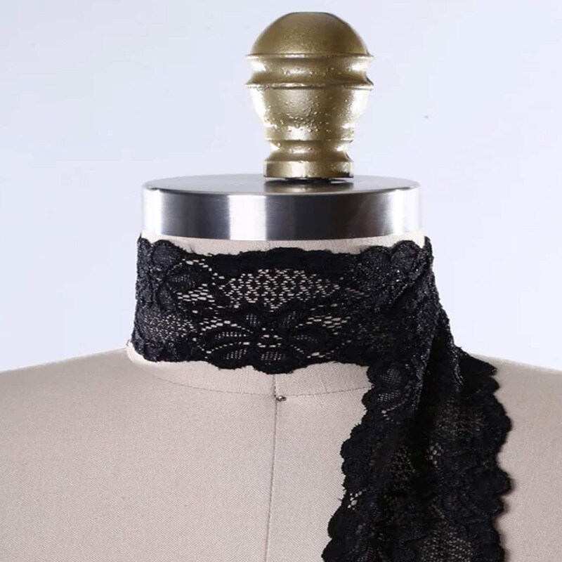 Black Scalloped Stretch Lace 2.5" Wide Floral Elastic Trim for Lingerie & Sewing